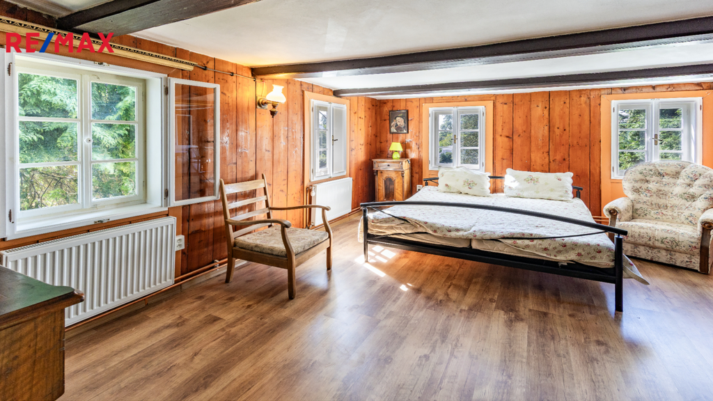 Hledáte místo, kde se snoubí vůně dřeva, tradice českého chalupaření a pohodlí současného bydlení? Pak vás jistě okouzlí tato prostorná chalupa v srdci Mistrovic v Libereckém kraji, mezi Českou Lípou a Novým Borem. Nemovitost, která prošla rekonstrukcí přibližně před 15 lety (včetně nových rozvodů elektřiny a vody), je připravena nabídnout okamžitě to, co si od života na chalupě přejete, klid, prostor a nezapomenutelné chvíle s rodinou či přáteli. Okolí je ideální pro odpočinek i aktivní trávení volného času – najdete tu spoustu turistických tras, cyklostezek a krásné výhledy na kopce Lužických hor a vrchy patřící k Českému středohoří. Už při vstupu do přízemí na vás dýchne domácká atmosféra. Najdete zde vybavenou kuchyň, útulný obývací pokoj pro dlouhé večery u knihy nebo deskových her a jednu ložnici, kde si dopřejete klidný spánek. V přízemí je také pokoj vhodný pro hosty, dětskou hernu nebo praktické uskladnění věcí. Tento pokoj je zároveň propojený s domácí hospůdkou. K dispozici je také koupelna, takže vše potřebné máte hned po ruce. První patro vás mile překvapí svou velkorysostí. Nachází se zde hned pět pokojů. Každý z nich je vybaven manželskou postelí a úložným prostorem, což zajišťuje dostatek místa nejen pro rodinu, ale i početné návštěvy. Samozřejmostí je koupelna i na tomto podlaží. A pokud by to bylo málo, půda nabízí další obytný prostor a vlastní koupelnu, tedy možnost, jak vytvořit třeba apartmán pro hosty nebo útulné útočiště pro ty, kdo hledají soukromí. Pod chalupou se nachází sklep se studánkou, romantický i praktický prvek, který potěší každého chalupáře. Je zde také čerpadlo a kompletní technologie k bazénu, takže pokud si přejete dopřát letní osvěžení, vše máte připraveno. K chalupě náleží zahrada optimální velikosti, která vám poskytne dostatek soukromí i prostoru pro odpočinek. V létě oceníte bazén, který se postará o osvěžení v horkých dnech, a k venkovnímu stolování je připraveno posezení na dlážděné terase, dále kryté posezení s krbem a samostatná udírna.. Nechybí ani garáž, ideální pro uskladnění zahradního náčiní či sportovního vybavení. A to nejlepší nakonec. Chalupa má i vlastní hospůdku se zabudovaným výčepním zařízením. Stylové posezení, které se stane centrem každého rodinného setkání, oslavy nebo večerního vyprávění u skleničky. Místo, kde se rodí příběhy a na které budete vždy rádi vzpomínat. Chalupa v Mistrovicích je víc než jen nemovitost. Je to místo, kde se propojuje klid venkova s dostatkem prostoru pro všechny, kteří jsou vám blízcí. Ať už hledáte útočiště pro víkendové úniky z města, nebo chcete vybudovat rodinné sídlo, které bude předáváno další generaci, tahle chalupa vám to umožní.