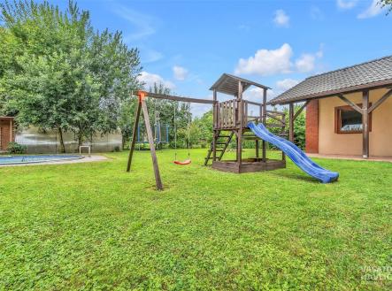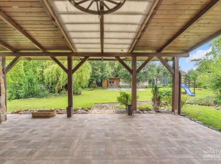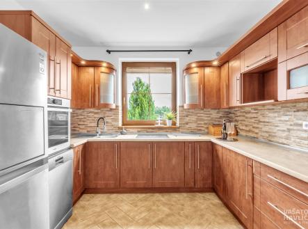 Představte si místo, kde se ráno probouzíte za zpěvu ptáků, den trávíte mezi zelení a večer zakončíte posezením u kamenného krbu pod širým nebem. Místo, kde vás nebude rušit městský hluk, jen jemný šum lesa za domem. Právě takový domov vám nabízíme v malebné obci Nový Ples, obci plné zeleně, obklopené lesy a loukami. Ideální domov pro ty, kdo touží po pohodě, klidu, a přitom nechtějí ztratit kontakt s městem. Hradec Králové je vzdálený jen 15 minut jízdy. Tento prostorný rodinný dům o dispozici 4+kk není jen stavbou – je to promyšleně vytvořené útočiště pro rodinný život, klid a soukromí. Nachází se v tiché slepé ulici, s minimem sousedů, kde neprojíždějí auta, a les máte doslova pár kroků od zahrady. Místo je ideální pro procházky, bezpečné hraní vašich dětí nebo jen klidné posezení s knihou. Na krásně upraveném pozemku o velikosti 1 189 m² najdete nejen samotný dům, ale i spoustu prvků, které dělají z běžného bydlení radost: k posezení s rodinnou využijete zastřešenou terasu s honosným kamenným krbem, ve kterém bez problému upečete pořádný kus masa, případně si v přiléhající udírně můžete vyudit něco dobrého, jezírko s rybičkami je přesně místem, které vám dodá klid na duši. Na zahradě stojící samostatný malý domek o užitné ploše 27, 4 m2 může být ideální pro hosty nebo třeba jako pracovna (vybavený sociálním zařízením a napojený na veškeré potřebné rozvody), skleník se samozavlažováním pro zahradnické nadšence, dětský domek, zahradní domek a kryté stání až pro tři auta. Vše promyšlené, praktické a přitom estetické. Dům o užitné ploše 165 m2 je dvoupodlažní, zděný, s novou (z června roku 2025) sedlovou střechou. Vnější vzhled domu je v přírodních tónech – fasáda v teplé cihlové barvě, tmavá střecha a okna s dekorem dřeva. Přízemí domu nabízí vstupní zádveří, chodbu, koupelnu se sprchovým koutem a WC, technickou místnost, a především velkorysý obývací prostor s kuchyní a jídelnou – centrální místo celého domu, odkud se vstupuje rovnou na terasu. V patře pak najdete chodbu, tři samostatné pokoje, prostornou koupelnu s vanou a WC. Z jednoho pokoje je přístup do podkroví, které může sloužit jako další úložné místo či do budoucna jako odpočinkový prostor. Dům je napojen na všechny inženýrské sítě (voda, plyn, elektřina, kanalizace). Vytápění i ohřev vody zajišťuje nový (z června roku 2025) plynový kondenzační kotel, v celém domě a venkovním domku je navíc komfortní podlahové vytápění. Krb v obývacím pokoji vytváří příjemnou atmosféru a zároveň vyhřívá celý dům pomocí teplovzdušných průduchů. Dešťová voda je sbírána do podzemní retenční nádrže a využívána na zavlažování zahrady nebo napájení jezírka. V docházkové vzdálenosti od domu najdete potraviny (6 min), autobusovou zastávku (8 min), dětské či fotbalové hřiště a tenisové kurty (5 min), do školky a školy v Rasoškách jste autem z domu za 4 minuty a kompletní občanskou vybavenost nabízí nedaleká Jaroměř (10 min autem). Skvělá je i dostupnost na dálnici D11, a to do 10 minut.