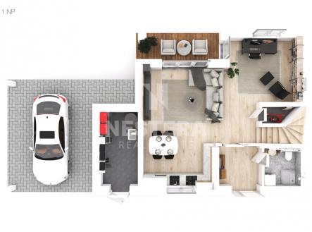 Na krásném, slunném pozemku o velikosti 490 m² v obci Nový Vestec právě vzniká moderní rodinný dům, který se již brzy může stát vaším novým domovem. Dům stojí na samém okraji zastavěné části obce, v klidném místě obklopeném zelení – tam, kde končí ulice a začíná příroda. Na vedlejších parcelách se už stavět nebude, takže si tu užijete opravdový klid a soukromí. Tento dům je polovinou dvojdomu a nabídne promyšlenou dispozici až 5+kk, díky které bude mít interiér vzdušnost, dostatek světla a poskytne ideální prostor pro celou rodinu. První nadzemní podlaží je věnováno prostorném obývacímu pokoji s kuchyňským koutem, odkud je velkými francouzskými okny vstup na jižně orientovanou, slunnou terasu. Dále se v přízemí nachází koupelna s WC, zádveří, technická místnost a dle projektu je možné zde jednoduchým umístěním 2 příček dokončit samostatný pokoj s vlastním vstupem na terasu. V patře na vás budou čekat další 3 ložnice a koupena s WC. Na zahradě vás příjemně překvapí příprava na bazén (hotové zemní práce - bazén je vykopán a vyzděn) a dostatek místa pro váš odpočinek, grilování i dětské hraní. Rodinný dům je k prodeji v dokončeném stavu bez finálních povrchů (podlahové krytiny, koupelnové obklady, sanita a kuchyňská linka) – to vám dává ideální příležitost doladit si poslední střípky interiéru přesně podle sebe. Vše podstatné je však hotovo: • podlahové vytápění, • tepelné čerpadlo, rekuperace a klimatizace pro komfortní provoz, • připraveno je i napojení na krbová kamna, • dřevěná okna s venkovními žaluziemi ZETA 90 pro stínění i soukromí, • kvalitní vchodové dveře a dveře na terasu HS portal, • plechová střešní krytina klik Rukki 40, • oplocená zahrada s pojezdovou bránou Parkování bude zajištěno na dvou krytých venkovních stání, dále zde bude menší garáž (8 m2) pro umístění kol, motorky, lyží a pod. Velkou výhodou je vlastní studna s 22m vrtem, která zajistí dostatek vody pro zalévání. Dokončení stavby je plánováno na březen 2026. Nový Vestec patří k oblíbeným lokalitám v okolí Prahy. Nabízí výbornou dostupnost do města – autem se dostanete na Černý Most za 20 minut, přímý autobus vás tam doveze pohodlně bez přestupů. V okolí najdete školu, školku, obchod, restaurace i sportovní zázemí, vše v dosahu několika minut. A když budete chtít na chvíli vypnout, příroda tu začíná doslova za plotem – lesy, cyklostezky a klidné cesty pro běh, procházky i jízdu na kole. Tento dům představuje skvělé spojení moderního bydlení, soukromí a blízkosti Prahy. Je to místo, kde můžete začít novou kapitolu – domov, který roste spolu s vámi. NESTERA je připravena Vám vyřídit nejvýhodnější financování nemovitosti a také její následnou správu a pronájem. Umíme připravit komplexní řešení v oblasti financí – pojištění, investice, finanční analýzu a s tím související unikátní životní plán prosperity. Pro více informací kontaktujte tým NESTERA.