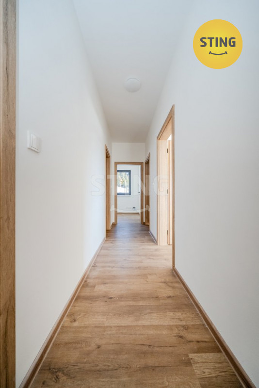 Nabízíme k pronájmu moderní novostavbu rodinného domu o dispozici 5+kk v klidné a vyhledávané lokalitě obce Nýdek (Moravskoslezský kraj). Dům se nachází na prostorném a slunném pozemku o výměře 1 456 m², který poskytuje dostatek soukromí, prostoru pro zahradu, terasu i rodinné aktivity. Jedná se o přízemní bungalov s užitnou plochou 126 m² a praktickým dispozičním řešením. Dominantou domu je světlý obývací prostor s kuchyňským koutem a přímým vstupem na terasu a zahradu. Velkoformátová okna zajišťují dostatek denního světla a příjemné propojení interiéru s exteriérem. Interiér je laděn do moderního, nadčasového stylu v kombinaci dřeva a antracitových prvků, což vytváří útulné a elegantní bydlení bez nutnosti dalších investic. Dispozice obývací pokoj s kuchyňským koutem 4 samostatné pokoje (ložnice / dětské pokoje / pracovna) koupelna s vanou i sprchovým koutem samostatné WC technická místnost chodba a zádveří Technické informace a vybavení novostavba – ihned k nastěhování podlahy: lepený vinyl vytápění: elektrické topné rohože krbová kamna Romotop ohřev vody: elektrický bojler Ariston 120 l technická místnost s místem pro pračku a sušičku moderní kuchyňská linka s vestavnými spotřebiči velká francouzská okna se vstupem na terasu automatická vjezdová brána 2 parkovací stání přímo před domem Energetická náročnost Energetická třída B – velmi úsporná. Dům splňuje parametry nízkoenergetického bydlení a nabízí velmi nízké provozní náklady. Lokalita Nýdek nabízí klidné bydlení obklopené přírodou Beskyd s výbornou dostupností do Třince, Českého Těšína i Frýdku-Místku. Ideální místo pro rodinný život, relax i aktivní trávení volného času. Hlavní výhody ✔ novostavba bez dalších investic ✔ dispozice 5+kk ✔ užitná plocha 126 m² ✔ pozemek 1 456 m² ✔ nízkoenergetická stavba (třída B) ✔ krbová kamna + podlahové vytápění ✔ 2 parkovací stání ✔ automatická brána ✔ klidná lokalita u přírody ✔ ihned k nastěhování