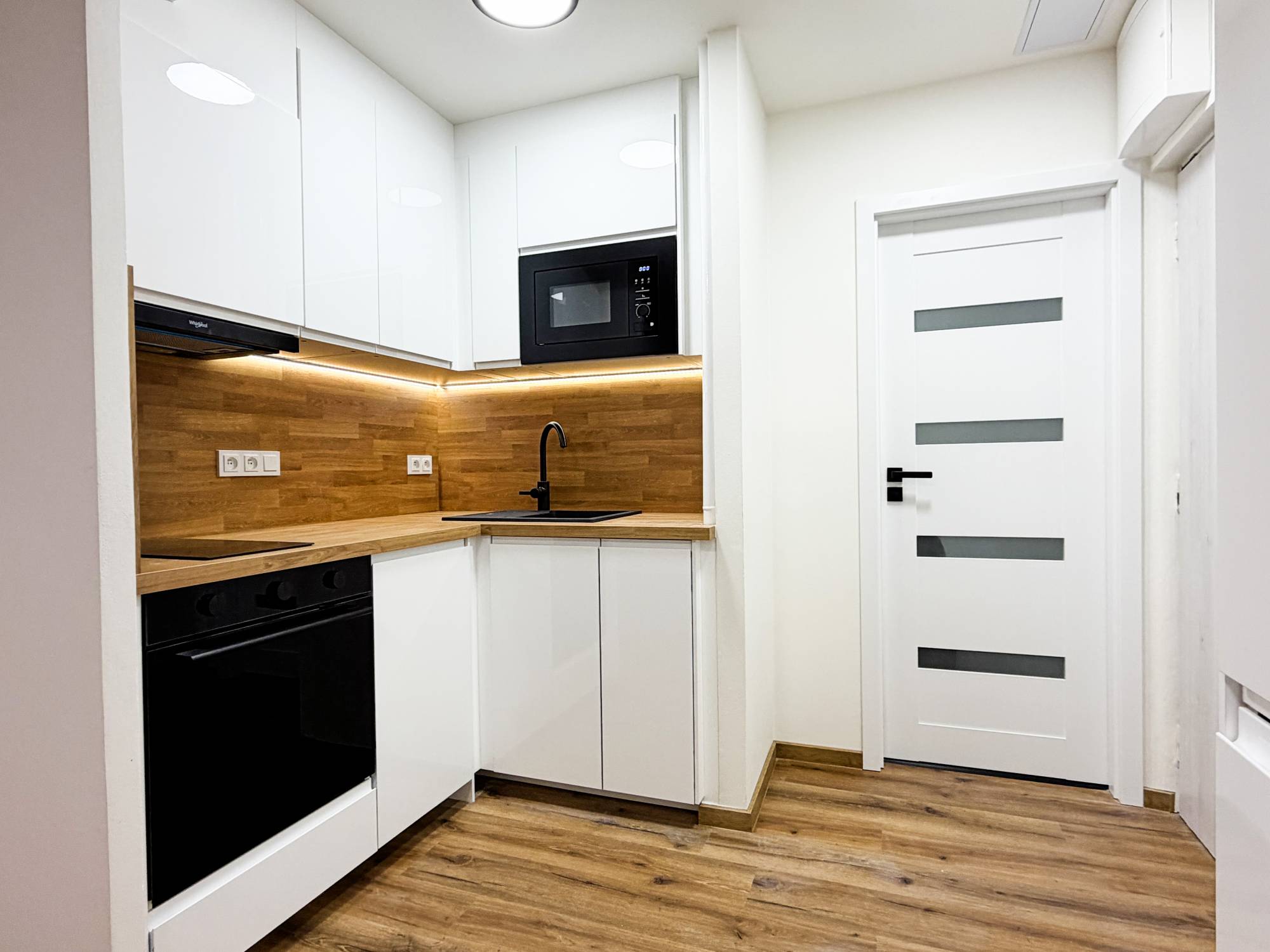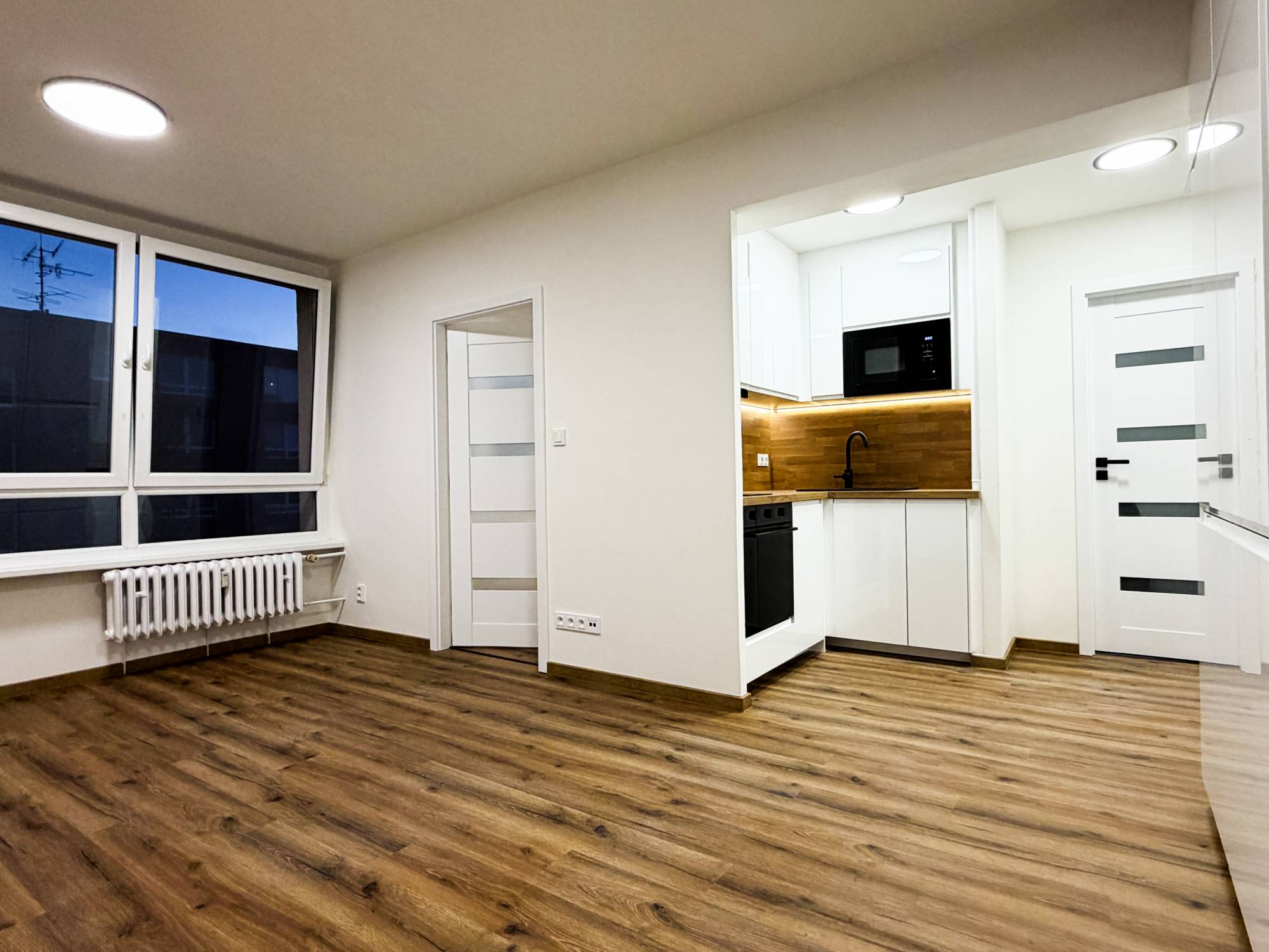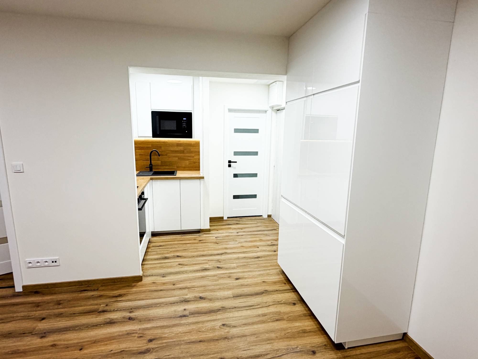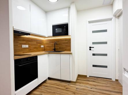 Byt po rekonstrukci o velikosti 2+kk včetně komory 38 m² Jiřího Wolkera, Nymburk Nabízíme k podnájmu moderní a kompletně zrekonstruovaný byt 2+kk o výměře 38 m² s komorou, který se nachází ve 1. patře revitalizovaného panelového domu v klidné lokalitě města Nymburk. Byt prošel rozsáhlou rekonstrukcí v roce 2025/2026 – nové zděné jádro, omítky, vinylové podlahy, interiérové dveře, obklady, sanita i rozvody elektřiny, vody a odpadů. Dispozice bytu: - Prostorný obývací pokoj s kuchyňským koutem - Ložnice - Vstupní chodba - Koupelna s toaletou - Komora (2 m²) umístěná v přízemí domu – ideální jako úložný prostor Byt se pronajímá částečně vybavený: - Obývací pokoj: - Kuchyňský kout: kuchyňská linka (IKEA) s vestavěnou myčkou, troubou, mikrovlnnou troubou, indukční varnou deskou a lednicí s mrazákem - Koupelna: sprchový kout, umyvadlo, toaleta, pračka - Ložnice: postel s nočními stolky Platby: - Měsíční nájemné: 14 000 Kč - Zálohy na služby, vodu a teplo: 3 500 Kč - Elektřina se přepisuje na nájemníka - Vratná kauce: 35 000 Kč - Provize RK: 10 000 Kč Další informace: Dům je zateplený a prošel kompletní revitalizací. Energetická náročnost budovy – třída D – zaručuje rozumné provozní náklady. Lokalita: V okolí se nachází kompletní občanská vybavenost. Skvělá dopravní dostupnost – pěší vzdálenost MHD, blízké napojení na dálnici a dostupnost služeb v dosahu několika minut. Zaujal vás tento byt? Neváhejte nás kontaktovat pro více informací nebo sjednání osobní prohlídky. Rádi vám poskytneme veškeré potřebné informace a zajistíme termín návštěvy.