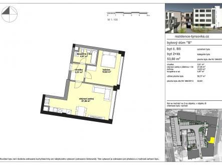 Nabízíme k prodeji elegantní byt 2+kk o velikosti 53.60 m² v projektu Rezidence Tyršovka, který vzniká v samotném centru města Nymburk. Dokončení je plánováno na 3Q roku 2027. Parametry byt u: dispozice: 2+kk plocha bytu: 53.60 m² umístění: 2. NP, objekt B orientace: východ O projektu: Rezidence Tyršovka přetváří bývalý průmyslový areál s historickou hodnotou na moderní a komfortní bydlení. Součástí projektu je uzavřený vnitroblok s japonskou atriovou zahradou, dětským hřištěm a odpočinkovými zónami. Lokalita nabízí kompletní občanskou vybavenost v pěší dostupnosti a výbornou dopravní dostupnost – do Prahy se vlakem dostanete za 40 minut, do Mladé Boleslavi za 30 minut. Další informace: Součástí bytu není kuchyňská linka, ale jsme schopni její realizaci zajistit ve spolupráci s kuchyňským studiem Gorenje. Parkování: Možnost zakoupení parkovacího stání za cenu 450 000 Kč (není zahrnuto v ceně bytu). Více o projektu naleznete na webu: Rezidence Tyršovka