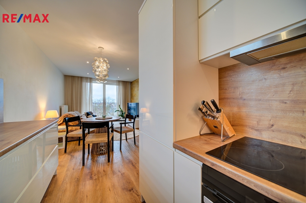 Dovolujeme si Vám nabídnout k pronájmu exkluzivní, luxusně vybavený byt 3+kk s balkonem o celkové ploše 68,1 m², který se nachází v žádané lokalitě Nymburka, v ulici V Kolonii. Byt je umístěn v 5. nadzemním podlaží moderní novostavby s výtahem a je kompletně a nadstandardně zařízený, s důrazem na kvalitu, funkčnost a detail. Díky plnému vybavení je byt připraven k okamžitému nastěhování bez dalších investic. Dominantou bytu je světlý obývací pokoj s kuchyňským koutem o velikosti 21,48 m², kde je pro maximální tepelný komfort instalována termoizolace v podhledech, která přispívá k příjemnému klimatu po celý rok. Kuchyň je vybavena kvalitní kuchyňskou linkou s vestavěnými spotřebiči a drtičkou bioodpadu, což podtrhuje praktický a moderní charakter bydlení. Celý byt je vybaven předokenními žaluziemi, které zajišťují vysoký komfort bydlení, účinnou regulaci světla i teploty a zároveň dostatek soukromí. Byt dále nabízí dva samostatné neprůchozí pokoje o výměrách 11,31 m² a 11,46 m², koupelnu, samostatné WC, chodbu a technickou místnost. Samozřejmostí jsou vestavěné skříně, pračka, sušička a další prvky nadstandardního vybavení, které zajišťují maximální komfort bydlení. Součástí pronájmu je sklepní kóje a venkovní parkovací stání. Měsíční nájemné činí 25 000 Kč a zahrnuje O2 TV a internet, zálohy na služby a energie jsou 4 000 Kč pro dvě osoby, elektřinu si nájemce přepisuje na sebe. Vratná kauce je stanovena ve výši 40 000 Kč. Byt je ihned k dispozici a je ideální volbou pro klienty hledající komfortní, reprezentativní a bezstarostné bydlení. V případě zájmu o více informací nebo domluvení prohlídky mě neváhejte kontaktovat.