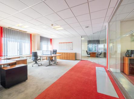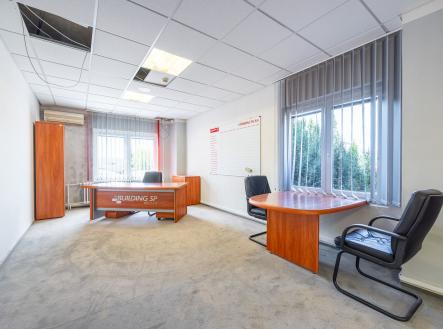 Hledáte reprezentativní kancelářské prostory, které splní veškeré vaše požadavky? Nabízíme vám prosklené kanceláře o velikosti přibližně 200 m2, situované v 1. patře cihlového domu. Tyto prostory jsou ideální pro firmy, které chtějí vytvořit profesionální a příjemné pracovní prostředí. Kanceláře jsou rozděleny na 5 samostatných a oddělených místností, které poskytují potřebnou intimitu a klid pro vaši práci. Součástí prostor je také přijímací část s recepcí a pohodlnou sedačkou, která vítá vaše klienty a návštěvy. Všechny kanceláře jsou vybaveny kvalitním nábytkem z masivu, skříněmi na šanony a ergonomickými židlemi, což zajišťuje komfortní pracovní podmínky. Pro maximální pohodlí jsou kanceláře klimatizované a disponují rozvody internetu, což umožňuje efektivní práci s moderními technologiemi. V zasedací místnosti je navíc připraveno místo pro projektor, ideální pro prezentace a schůzky. Vytápění a teplou vodu zajišťuje spolehlivý plynový kotel, což přispívá k nízkým nákladům na provoz. Další výhodou těchto prostor je vybavená kuchyňka pro zaměstnance, kde si mohou připravit občerstvení a relaxovat během přestávek. Sociální zařízení je samozřejmostí, a navíc je k dispozici i možnost skladu pro uskladnění potřebných materiálů. Před budovou se nachází parkování pro přibližně 8 aut, což jistě oceníte vy i vaši klienti, kteří budou mít snadný přístup k vašim kancelářím. Nezmeškejte příležitost pronajmout si tyto atraktivní kancelářské prostory, které vám poskytnou ideální zázemí pro rozvoj vaší firmy.