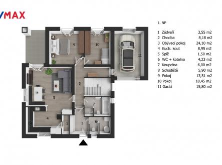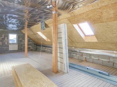 Nabízíme k prodeji prostorný rodinný dům v klidné a vyhledávané obci Obříství, která leží jen 5 minut od Neratovic a 30 minut od Prahy. Dům je novostavba o dvou podlažích, zkolaudovaná k 1. 9. 2025, a je ideální pro rodinu, která hledá moderní bydlení s výbornou dostupností. Přízemí (103 m²) je dokončené – nachází se zde prostorný obývací pokoj s kuchyňským koutem, dvě samostatné ložnice, koupelna, technická místnost a garáž. Celé patro má podlahové vytápění včetně garáže. Horní patro je aktuálně kolaudováno jako půda a je ve fázi rekonstrukce na obytný prostor. V 2NP se nachází zateplení a jsou zde umístěna okna včetně těch střešních. Lze zde vybudovat až tři obytné místnosti a samostatnou koupelnu podle vlastních představ. Druhé patro nabízí možnost až 90 m². Dům je vytápěn výkonnou krbovou vložkou, která bez problémů vytopí celé přízemí. K dispozici je i elektrokotel, který ohřívá podlahové vytápění a 2NP. Dům má obecní vodovod, je napojen na kanalizaci s tlakovým čerpadlem, elektroinstalace je v mědi a stavba je z kvalitních pórobetonových tvárnic Porfix. Střecha je plechová, okna plastová s dvojsklem. Internet je dostupný přes O2 i Vodafone 5G. Pozemek je rovinatý, s obecní příjezdovou cestou a zpevněnými plochami pro parkování. Na hranici pozemku se nachází antoníček s možností připojení na plyn. Obříství nabízí skvělé rodinné zázemí: základní školu, praktického i dětského lékaře, zubaře, knihovnu, poštu, kavárnu a několik restaurací. K Labi, přístavišti a venkovní posilovně je to pouhých 5 minut pěšky. Autobus PID vás dopraví na pražské Ládví za cca 30 minut. Hlavní výhody: Ideální pro rodinu s dětmi Novostavba s možností dokončení patra podle vlastních představ Skvělá dostupnost do Prahy, Neratovic i Mělníka. Autobus 369 Vás doveze za 30 minut do Praha Ládví Podél Labe se nachází venkovní workoutové hriště a v létě je zde ideální místo pro rybaření. Příroda a Labe v docházkové vzdálenosti
