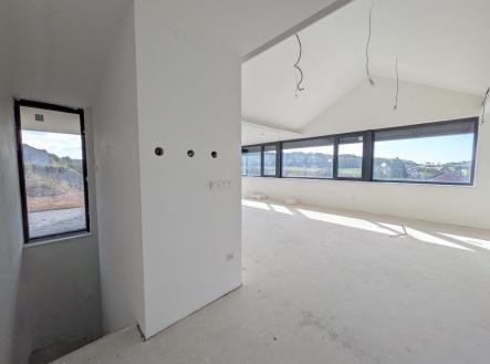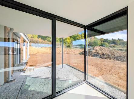 Dovolujeme si vám zprostředkovat koupi novostavby viladomu v rezidenční lokalitě Pod Vyhlídkou v Ochozu u Brna. Jedná se o třetí etapu výstavby, která zahrnuje čtyři rodinné domy v nadstandardním provedení. Dvoupodlažní dům s užitnou plochou 225 m2, zasazený do jižního svahu, je umístěn na pozemku s celkovou výměrou 959 m2. 1. PP - technické: zádveří, vstupní hala, WC, technická místnost, pracovna, garáž pro dva automobily; 1. NP obytné: hala, obývací pokoj s kuchyňským koutem (57 m2, v obytné části s výškou stropu 4,5 m), dva pokoje (14,5 m2;14,5 m2), ložnice s vlastní šatnou, koupelnou a toaletou (24 m2), koupelna společná s toaletou, vstup na dvě terasy a do zahrady. Technický popis: základové pasy + ŽB základová deska, svislé konstrukce 1.PP btb tvarovky, 1.NP keramické tvarovky, strop 1.PP ŽB monolitická deska, strop 1.NP řešen jako součást konstrukce dřevěného krovu, střecha sedlová s keramickou krytinou, omítaná fasáda s částečně dřevěným obkladem ze sibiřského modřínu, provedená v zateplovacím systému ETICS, výplně otvorů hliníkové, velkoplošná skla, předokenní žaluzie. Primárním zdrojem tepla je rekuperační jednotka s integrovaným tepelným čerpadlem s výkonem až 1,3 kW, sekundárním zdrojem tepla je ve všech místnostech elektrické podlahové topení, interiérové schodiště zděné Ytong, dešťová voda svedena do akumulační jímky s bezpečnostním přepadem do vsakovacích bloků. V ceně domu je zahrnuta chytrá domácnost SOMFY, díky které bude možné ovládat žaluzie, garážová vrata, regulaci topení a videotelefon, zabezpečovací systém s napojením dveřních magnetů a sensorů pohybu, venkovní kamery. V ložnici, dětských pokojích a obývacím prostoru budou integrovány klimatizační jednotky. Dům bude prodáván ve stupni dokončení and #34;White Walls and #34; (bez podlahových krytin, obkladů, zařizovacích předmětů, dveří). Venkovní schodiště propojuje úroveň vjezdu a zahrady v úrovní 1.NP. Celý pozemek bude oplocen plotovými 3D panely, uliční oplocení bude tvořit opěrná zeď, zpevněné plochy budou zajišťovat jedno odstavné a jedno parkovací místo, zahrada bude oseta trávou. V současné době je dům ve fázi hrubé stavby. V lokalitě Pod Skalkou se k prodeji nabízí i další viladomy a RD, více informací v RK. Obec Ochoz u Brna leží na okraji CHKO Moravský kras v těsné blízkosti lesů, ve vzdálenosti 7 km od hranice městské části Brno - Líšeň. Občanská vybavenost: Česká pošta, praktický lékař pro dospělé, ZŠ a MŠ, Lesní mateřská škola LESINKA, Restaurace Na kovárně, pension Ochozzerie, Bistro - areál Svazarmu, Restaurace Verona, zájmové organizace Skaut, TJ. Dostupnost IDS: autobus 201 - Židenice nádraží, Jedovnice; autobus č. 210 - Hostěnice, Bílovice nad Svitavou (žel. stanice).