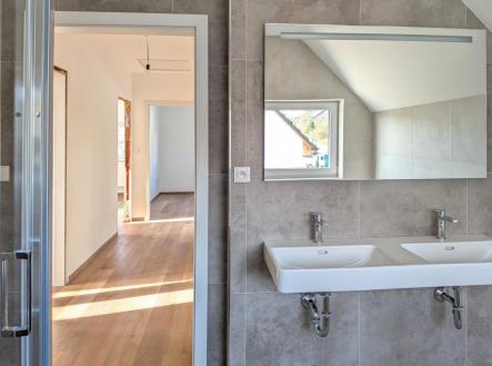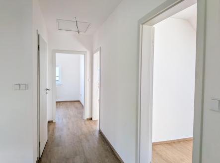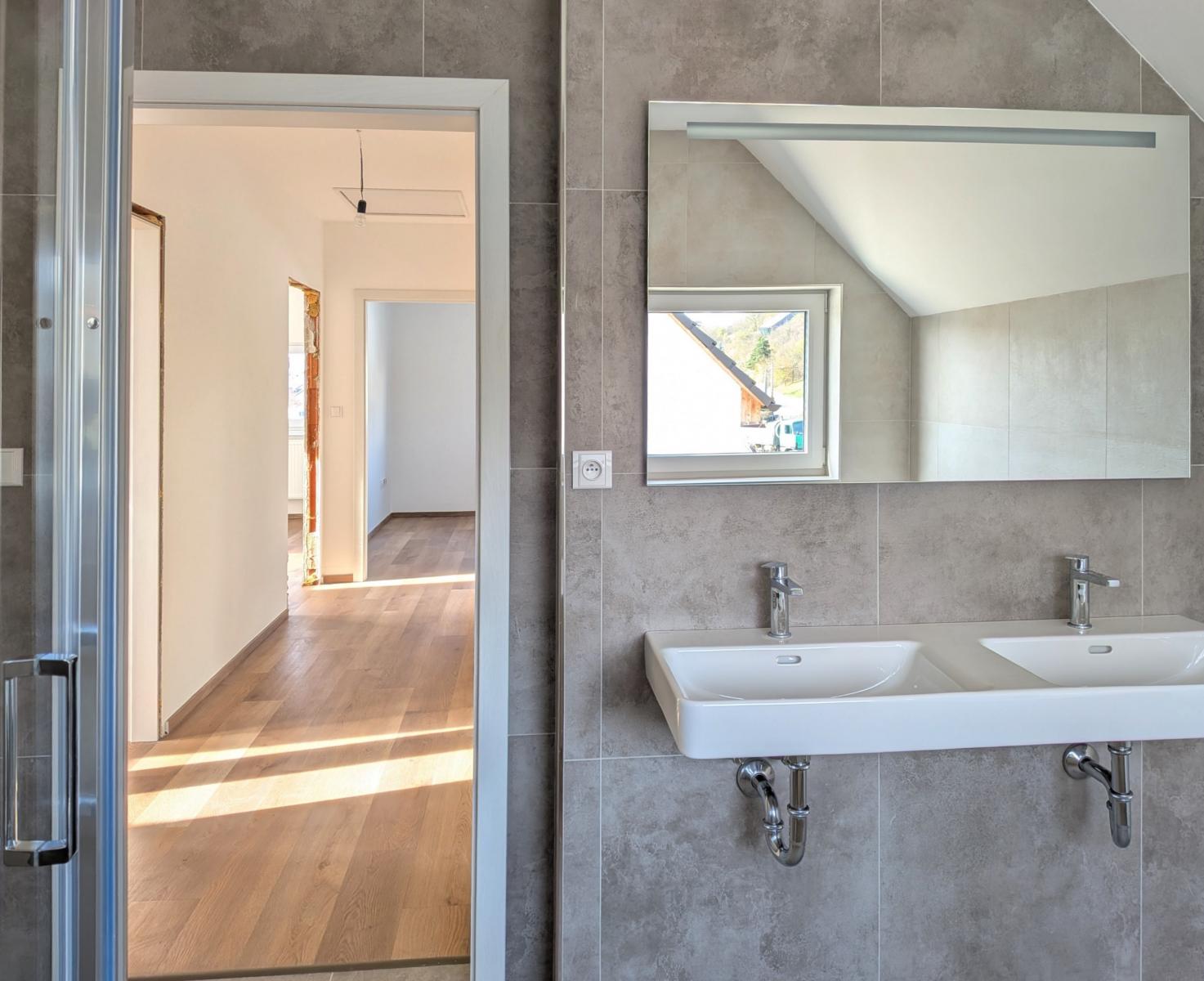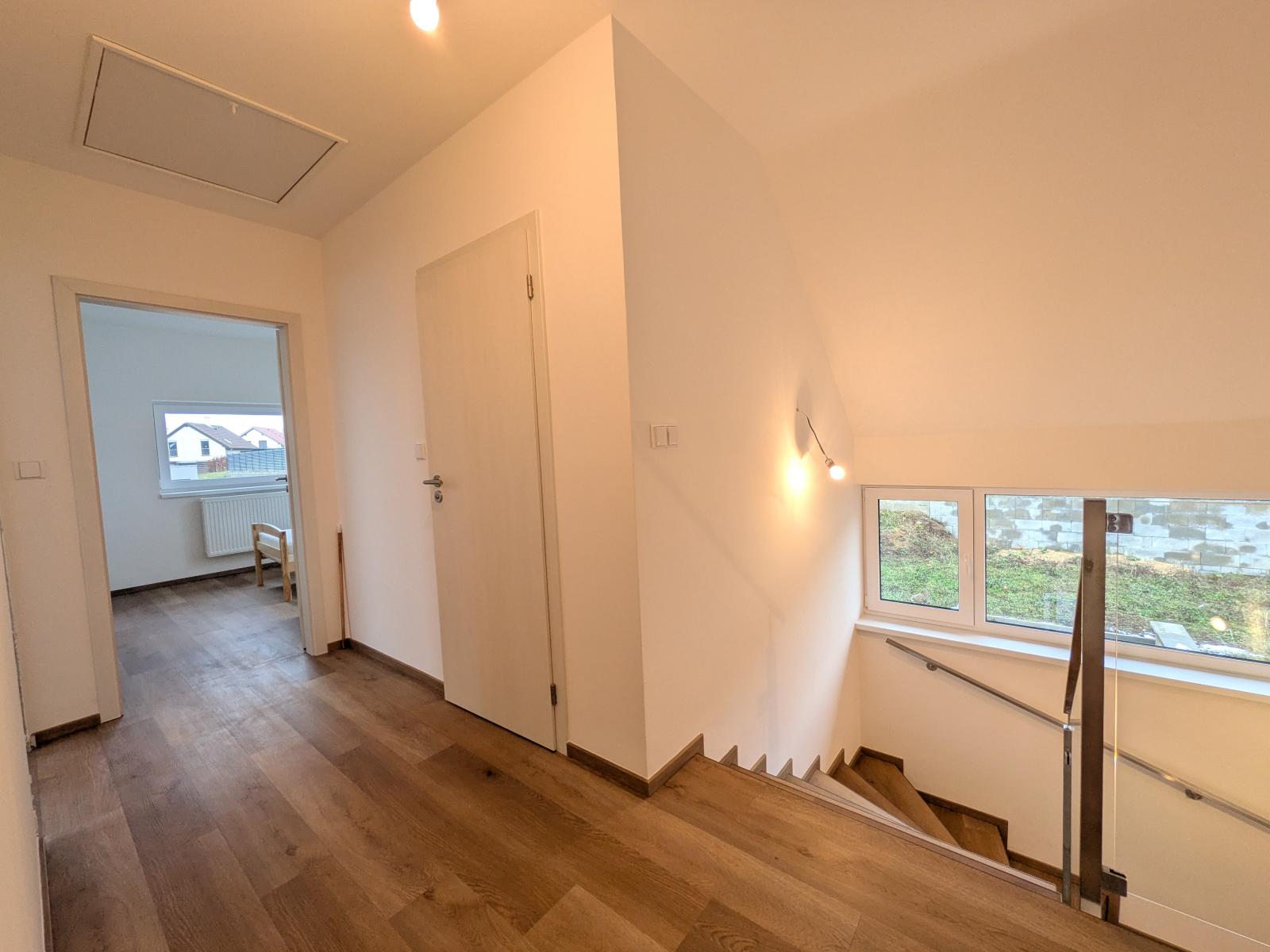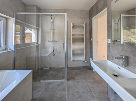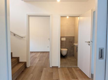Dovolujeme si vám nabídnout zprostředkování prodej dokončené novostavby rodinného domu, která byla postavena ve druhé etapě developerského projektu v lokalitě Pod Skalkou v Ochozu u Brna. Jedná se o dokončený, zkolaudovaný jednopodlažní dům s obytným podkrovím (označení S03) s navazující terasou a zahradou. Dům je dispozičně řešen jako 5+kk s garáží a skladem (podlahová plocha 158m2), zastavěná plocha domem je 125 m2, okolní pozemek - zahrada 306m2. Konstrukční řešení: železobetonová zákl. deska, nosná konstrukce a dělící příčky z keramických cihelných bloků, stropní konstrukce ze systému Heluz Miako, dřevěný krov zateplený kvalitní tepelnou izolací, střešní krytina z pálené tašky, na terase betonová dlažba, ohřev TUV a vytápění pomocí podlahového topení a deskových radiátorů zajišťuje plynový kondenzační kotel. 1.NP: obývací pokoj s kuchyňským koutem 36 m2 se vstupem na terasu, pracovna 8m2, komora, WC, chodba se zádveřím a schodištěm, technická místnost se vstupem do garáže s navazujícím skladem 13m2. 2.NP: 3x pokoj (14m2) , koupelna, samostatné WC, půdní prostor přístupný po sklápěcích kovových schodech je možno využít pro uložení věcí. Z obývacího pokoje je přístupná dlážděná terasa s opěrnou zídkou na kterou navazuje zahrada. Uliční fronta má JZ orientaci. V lokalitě Pod Skalkou nabízíme k prodeji poslední z novostaveb rodinných domů (s označením S03). V další etapě výstavby jsou aktuálně k prodeji nabízeny čtyři novostavby vila domů. Obec Ochoz u Brna leží na okraji CHKO Moravský kras v těsné blízkosti lesů, ve vzdálenosti 7 km od hranice městské části Brno - Líšeň. Občanská vybavenost: Česká pošta - pobočka Ochoz u Brna, praktický lékař pro dospělé, ZŠ a MŠ v Ochozu u Brna, Lesní mateřská škola LESINKA, Restaurace Na kovárně, pension. Dostupnost IDS: autobus 201 - Židenice nádraží, Jedovnice; autobus č. 210 - Hostěnice, Bílovice nad Svitavou (žel. stanice).