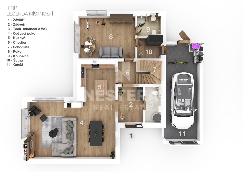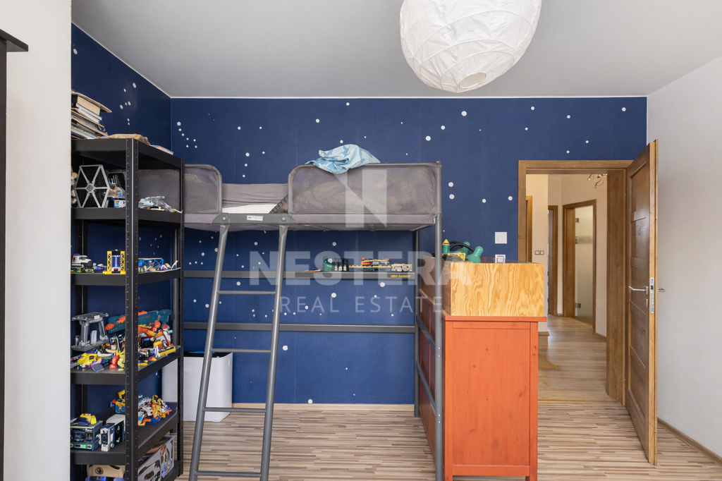 Hledáte klidné rodinné bydlení s výbornou dostupností do Prahy, dostatkem prostoru a přírodou doslova za domem? Představujeme vám moderní rodinný dům o dispozici 5+kk, situovaný v oblíbené části Odolené Vody, který se teď může stát vaším novým domovem. Cihlový rodinný dům, zkolaudovaný před 8 lety, disponuje užitnou plochou 161 m2 (+ 25 m2 garáž). S dispozicí 5+kk nabízí příjemný prostor pro pohodlné rodinné bydlení. K domu náleží velkorysý a rovinatý pozemek o rozloze 1.099 m2 s udržovanou zahradou. Krásným prvkem zahrady je udržovaná skalka a rybníček s cirkulací vody, osvětlením a vodními prvky, který vytváří jedinečnou atmosféru. Část domu je orientována na sever a pyšní se krásným výhledem, na západní straně si zase užijete příjemného slunečního svitu až do večerních hodin. K domu náleží betonová terasa, která je v současné době bez finálního obkladu a nabízí tak novému majiteli dotvoření venkovního posezení podle vlastních představ a potřeb. Dům je napojen na obecní vodovod a veřejnou kanalizaci. Voda je vyvedena i ven z domu (venkovní nezámrzný ventil). Vytápění a ohřev vody zde zajišťuje plynový kondenzační kotel. V přízemí i v patře je podlahové vytápění a interiér tak nenarušují nevzhledné radiátory. Dalším zdrojem topení je krb s akumulační nádrží, který při dosažení určité teploty automaticky přebírá funkci vytápění a nahrazuje kotel, což přináší nejen úsporu nákladů, ale i jedinečnou atmosféru domova. Dům je vnitřně zateplen. Venkovní fasáda je zatím bez finálního obkladu, je zde počítáno s přírodním kamenným obkladem, nicméně finální podoba domu a volba materiálu již bude na novém majiteli a jeho osobním vkusu. K domu náleží garáž vhodná pro parkování jednoho vozidla. Další vůz je možné zaparkovat volně na pozemku. Pozemek je kompletně oplocený, vjezd na něj je skrze pojezdovou bránu na dálkové ovládání. Odolena Voda je dlouhodobě vyhledávanou lokalitou především rodinami s dětmi. Nabízí kompletní občanskou vybavenost včetně mateřské a základní školy, obchodů, lékařů i restaurací, stejně jako široké možnosti sportovního a volnočasového vyžití. Velkou výhodou je rychlá dostupnost do Prahy, ať už autem nebo pravidelnou veřejnou dopravou. Lokalita tak spojuje klidné bydlení mimo ruch velkoměsta s pohodlím každodenní dostupnosti metropole. NESTERA je připravena Vám vyřídit nejvýhodnější financování nemovitosti a také její následnou správu a pronájem. Umíme připravit komplexní řešení v oblasti financí – pojištění, investice, finanční analýzu a s tím související unikátní životní plán prosperity. Pro více informací kontaktujte tým NESTERA.