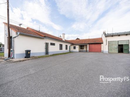 Tento komerční areál nabízí ideální kombinaci provozovny, skladů, dílny a firemního zázemí. Stavba s číslem popisným je uzpůsobena pro firemní provoz s kancelářemi a skladovacími prostory o výměře 125 m². Část prostorů bylo v minulosti využíváno jako prodejna potravin s vchodem z hlavní silnice protínající obec. Na rozlehlém pozemku se nacházejí dílny a sklady o celkové ploše cca 350 m². Pro pohodlné parkování či skladování slouží prostorný přístřešek. Zpevněná manipulační plocha s asfaltovým povrchem zajišťuje jednoduchou a bezpečnou manipulaci s nákladem a celý areál je oplocen s možností zabezpečovacího systému. První hala, která slouží jako dílna, má dvoje vjezdová vrata o rozměrech 3,7 × 2,85 m a 3,7 × 3,3 m, což umožňuje snadný přístup pro větší vozidla. Pomocí virtuální prohlídky a videa se záběry z dronu si můžete objekt prohlédnout ještě před prohlídkou, a zbylou část Vám představím osobně na prohlídce.