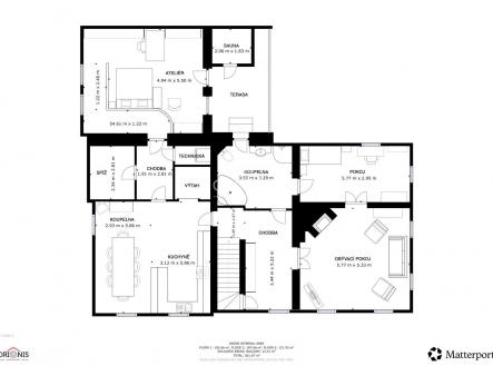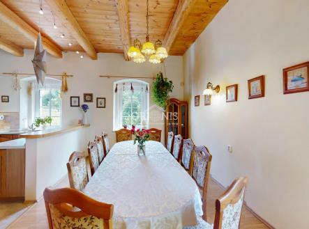 Bývalý mlýn v údolí Oslovic u Klášterce nad Ohří Na samotě, v malebném údolí obklopeném lesy a loukami, se nachází jedinečná historická stavba bývalý mlýn s bohatou minulostí, který prošel kompletní a citlivou rekonstrukcí. Rekonstrukci mlýnského kola prováděl známý sekerník František Mikyška. Tato výjimečná nemovitost spojuje kouzlo starých časů s komfortem moderního bydlení a nabízí řadu možností pro soukromé i podnikatelské využití. Dispozice a technické parametry: Zastavěná plocha a nádvoří hlavní budovy: 641 m 3 nadzemní podlaží + sklep Kompletní rekonstrukce probíhá od roku 2000 až do současnosti Výtah přímo v domě Sauna pro dokonalou relaxaci Velká stodola: 284 m ideální pro svatební hostiny, kulturní akce či ateliér Vlastní vodní elektrárna o výkonu 27,2 kW umístěná na pozemku, zajišťující nízké provozní náklady a částečnou energetickou soběstačnost Rybník o rozloze 457 m Lesní pozemek 5 555 m Zemědělské pozemky a ovocný sad o výměře 76 659 m Vytápění domu je řešeno tepelným čerpadlem. Hlavní dům Dispozice domu je velkorysá a umožňuje široké využití jak pro vícegenerační bydlení, tak i jako penzion či retreatové centrum. V přízemí se nachází prostorný byt 3+1 kuchyň s jídelnou a krbovými kamny, koupelna, obývací pokoj, ložnice dílna, technické zázemí, šatna, komora, výtah V prvním patře se nachází druhý byt 3+1 s terasou a saunou a krbovými kamny, ideální zóna pro společenský život i relaxaci, komfortní ložnice, obývací pokoj, koupelna, výtah Druhé patro podkroví nabízí další koupelnu, ateliér, apartmán pro hosty. Sklepní prostory jsou využívány jako vinný sklípek. Díky výtahu, který spojuje všechna podlaží, je dům plně funkční a pohodlný pro každodenní užívání. Atmosféra a lokalita Mlýn leží v kouzelném údolí u Oslovic nedaleko Klášterce nad Ohří, na samotě, kde vládne klid, ticho a harmonie s přírodou. Proud vody, který kdysi poháněl mlýnské kolo, dnes napájí moderní vodní elektrárnu. Atmosféru dotvářejí rozlehlé louky, les a ovocné stromy, které navazují na pozemek a vytvářejí ojedinělý prostor pro odpočinek i inspiraci. Možnosti využití Tato nemovitost je ideální pro ty, kdo hledají reprezentativní rodinné sídlo s naprostým soukromím, ale zároveň i pro investory s vizí. Díky své poloze a charakteru je vhodná k podnikání, například pro: pořádání svateb, oslav a firemních akcí, ubytování formou apartmánů nebo penzionu, wellness, jógové nebo meditační retreaty