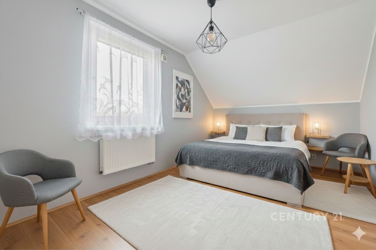 V klidné vesnici Okřesaneč se nachází dům, který nabízí prostor, funkčnost i potenciál do budoucna. Dům, ve kterém lze okamžitě bydlet, a zároveň poskytuje dostatek prostoru pro vytvoření osobitého domova podle vlastních představ. Nemovitost stojí na rovinatém pozemku o celkové výměře 1 368 m², který nabízí klid, soukromí a otevřený výhled do krajiny a na Železné hory. Celý dům je podsklepený – sklep tvoří dvě velké samostatné místnosti, ideální pro technické zázemí, dílnu, skladování nebo hobby využití. Dispozice domu je řešená jako 4+1 a je možnost rozšíření. Skvělá příležitost pro velkou rodinu. V přízemí se nachází: vstupní předsíň se spižírnou, hala se schodištěm, prostorná kuchyně, dva velké pokoje, koupelna. Dispozice působí otevřeně a nabízí dostatek denního světla i prostoru pro pohodlné bydlení. V patře jsou: dvě ložnice, navazující půdní prostor, který lze využít k vybudování dalšího pokoje, šatny nebo například druhé koupelny. Dům je v udržovaném stavu – vše je plně funkční a umožňuje okamžité bydlení, zároveň však nabízí velký prostor pro rekonstrukci či úpravy podle vlastních představ. Technické zázemí: Velkou výhodou je flexibilní systém vytápění – dům disponuje dvěma kotli (na tuhá paliva a na plyn) a má nově vyvložkovaný komín, což zajišťuje bezpečný provoz. Ohřev vody je řešený elektrickým ohřívačem. Průkaz energetické náročnosti budovy je aktuálně v procesu vyhotovení, ale bude k dispozici. Za domem se nachází: prostorná garáž s vlastní půdou, zázemí vhodné pro chov zvířat, altán s jezírkem, a rozlehlá, rovinatá zahrada, která nabízí dostatek místa pro relaxaci, rodinný život i další realizaci vašich plánů. Tento dům je ideální volbou pro ty, kteří hledají klid venkova, velký pozemek, prostor pro vlastní realizaci či zázemí pro velkou rodinu s domácími mazlíčky. Pro lepší představu a inspiraci jsem využila vizualizace vytvořené pomocí umělé inteligence. Pokud Vás tato nabídka zaujala, jsem Vám k dispozici a ráda se s Vámi v Okřesanči osobně potkám.