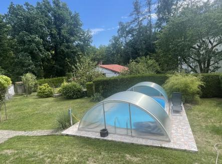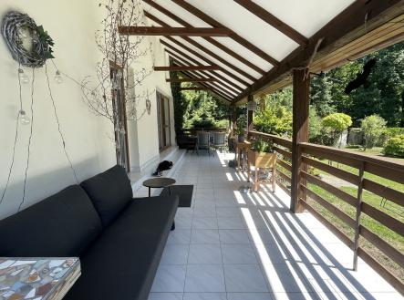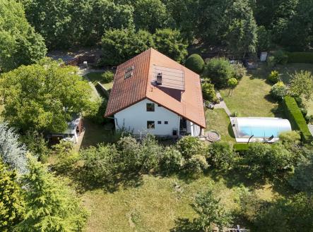 Rádi byste bydleli v naprostém klidu hned u lesa, max. 30 min. jízdy z jižní nebo východní části Prahy, na konci neprůjezdné ulice? Pak Vám můžeme nabídnout dům ve výborném stavu na úplném okraji obce Okrouhlo. Dům č. ev. 13 je se zahradou, bazénem a garáží pro 2 vozy v suterénu domu. Okrouhlo je obec položená 9 km jižně od sjezdu z Pražského okruhu u Dolních Břežan a inzerovaný dům č. ev. 13 je položen v části zvané Nové Okrouhlo, asi 1,5 km od vlastní obce Okrouhlo - viz mapa. Výměra pozemku: 888 m2 (rohová parcela) Zastavěná plocha domu: 81 m2 Dům má na úrovni přízemí prostornou krytou terasu podél celého domu se sezením a výhledem do krásné zahrady, na bazén (6x3m) a i na les do dvou stran. Přízemí: prostorný obývací pokoj se vstupem na terasu, kuchyně s plně vybavenou kuchyňskou linkou a jídelnou, koupelna s rohovou vanou a sprchovým koutem, samostatné WC a komora. Patro: chodba, 3 pokoje (každý se samostatným vstupem z chodby, 2 pokoje mají navíc i dveře na balkon), prostorná šatna a koupelna s WC a s prostorem pro pračku i sušičku. Suterén: garáž pro 2 vozy, kotelna, velký sklad. Dům je zděný, kolaudovaný v r. 1998. Na střeše jsou pálené tašky, okna jsou plastová (trojsklo, stáří 10 let), rozvody vody i odpadu v plastu, elektrorozvody v mědi, střecha zateplena. V suterénu byly instalovány vodorovné hydroizolace a protiradonová fólie. Nízké náklady na provoz: nyní pouhých cca 2.500 Kč/měs. za elektřinu (při vytápění převážně dřevem) + náklady na dřevo. Dům je ve výborném stavu bez potřeby okamžité investice. PENB zatím nebyl zpracován - ze zákona: G. Inženýrské sítě: voda ze dvou studen (13m hloubka, vždy dost vody, 1 studna vlastní samostatná na pitnou vodu a druhá společná se sousedem užívaná pro zalévání). Vytápění elektrokotlem (může vytopit celý dům) nebo kotlem na pevná paliva, odpad do žumpy. Parkování: 2 místa v suterénu domu + 2 až 3 místa venku před domem na okraji lesa.