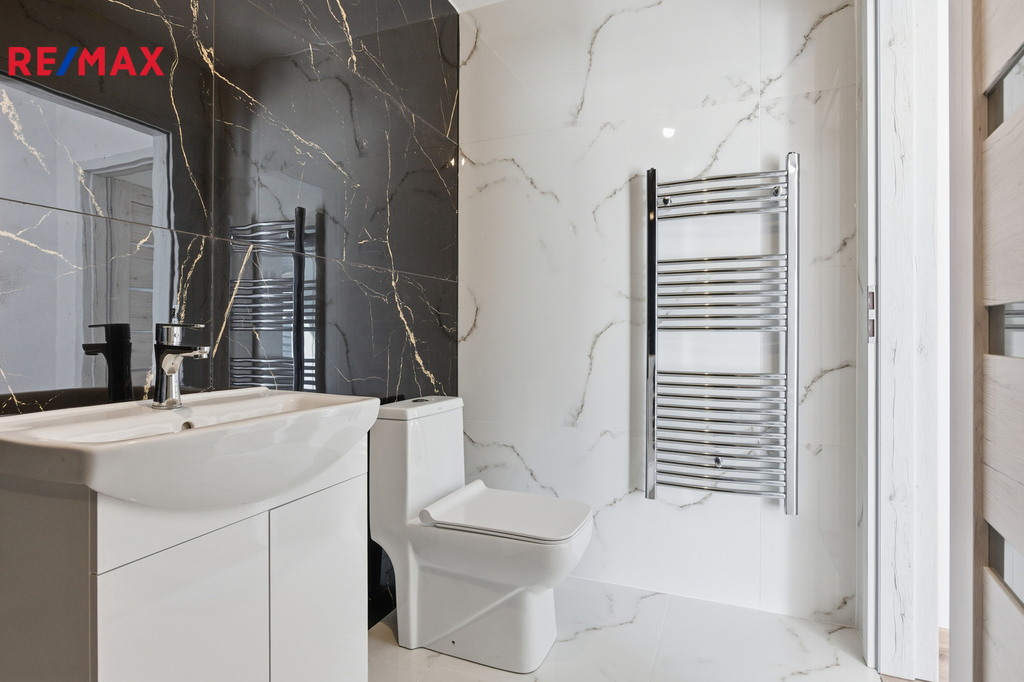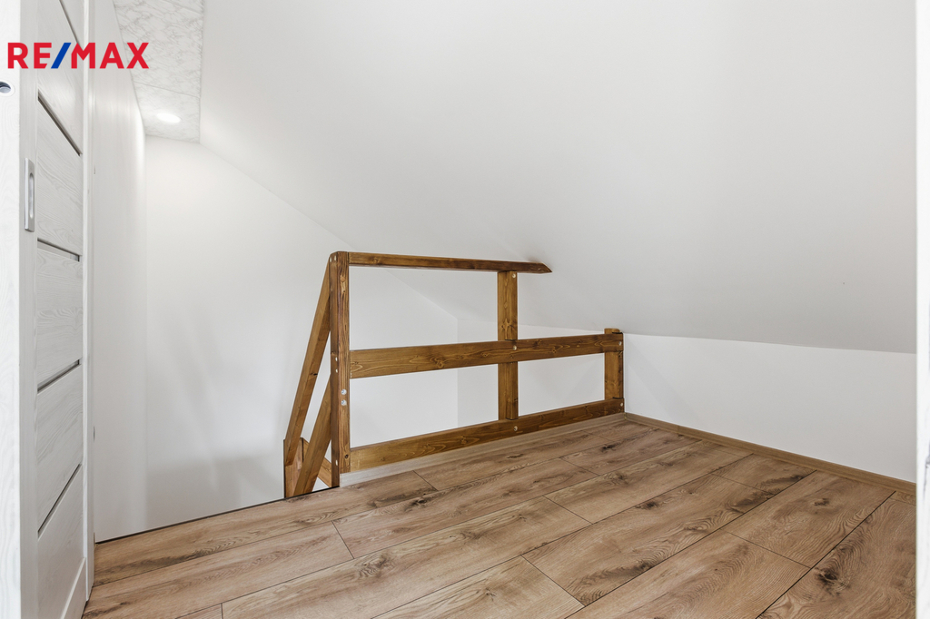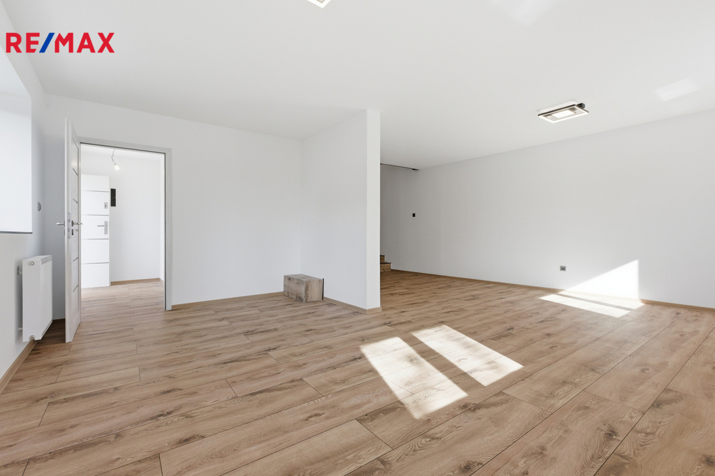 Nabízím k prodeji rohový mezonetový byt 3+kk o celkové podlahové ploše 114 m² v obci Brník 14, Oleška. K nemovitosti patří pozemek o výměře 49 m² a předzahrádka o velikosti 15 m², která je pronajata od obce. Ideální místo pro odpočinek nebo posezení s přáteli. Nachází se v prvním a druhém nadzemním podlaží domu, který prošel kompletní rekonstrukcí. Kolaudace proběhla v prosinci 2024. V přízemí je předsíň (4,40 m²), koupelna se sprchovým koutem a toaletou (4,14 m²) s velkoformátovou, exkluzivní dlažbou, dále kuchyně (18,15 m²), obývací pokoj (17,92 m²) a schodiště (8,82 m²). V patře se nachází chodba (6,09 m²), ložnice (15,06 m²) a prostorný pokoj (26,46 m²). Interiér je vybaven vinylovými podlahami, elektrickým kotlem a bojlerem o objemu 80 litrů. Samozřejmostí je samostatné měření elektřiny i vody. Odpad je řešen jímkou o objemu 9 m³. Kvalitní střešní okna Velux s trojsklem (140×90) zajišťují dostatek denního světla i tepelný komfort. Majitelé ocení také bezpečnostní vstupní dveře, přípravu pro kuchyňskou linku a možnost připojení internetu a televize od T-Mobile. Hlavní jistič je 25 kWh. Parkování je možné přímo před domem (dvě místa) nebo na pozemku u bytu. Obec Oleška, část Brník, nabízí klidné a bezpečné bydlení s dobrou dostupností do okolních měst. Do Říčan je to zhruba 10 minut jízdy, do Kostelce nad Černými Lesy necelé 3 km a do centra Prahy se dostanete pohodlně za 35–40 minut. V obci je mateřská škola a nová základní škola, která bude otevřena od 1. září 2025. V Olešce i okolních obcích najdete obchody, restaurace, poštu i základní služby. Autobusová zastávka „Oleška, Brník, U Rybníka“ je v docházkové vzdálenosti, s přímým spojením do Kostelce nad Černými Lesy a dále na Prahu. Celkově působí tento mezonet prostorně, vzdušně a světle. Díky použitým materiálům a modernímu provedení nabízí velmi příjemné bydlení v klidné lokalitě s výbornou dostupností do Prahy. V případě zájmu o prohlídku mě neváhejte kontaktovat.
