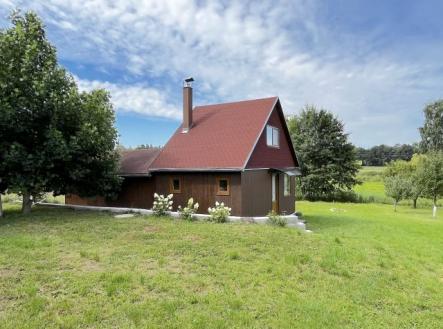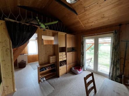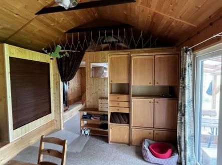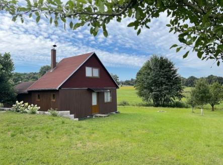 Krásná chata na polosamotě Na základě výhradního zastoupení nabízíme k prodeji krásnou novostavbu dřevěné chaty na polosamotě s možností celoročního bydlení. Chata sestává z obývací kuchyně, obývacího pokoje, dalšího pokoje a v 2.NP se nachází ložnice a dále spací prostor pro případné návštěvy. Zastavěná plocha je 54 m2. Na pozemku se nachází 30 m hluboký vlastní vrt, ze kterého je voda dovedena do chaty, odpady jsou svedeny do jímky o objemu 4 m3. Elektřina je řešena fotovoltaickými panely a v případě potřeby elektrocentrálou. Na pozemku dále stojí dřevěný sklad nářadí. Jednou z předností nemovitosti je její umístění u lesa, mimo obytnou zónu. V sousedství se nachází pouze jedna chata a menší zahrádka. Chata je do této doby téměř neužívaná, v perfektním stavu, postavená a zařízená pro užívání i větší rodiny. Vše, co je na fotografiích, tak je součástí prodeje. Pozemek o celkové výměře 1100 m2 je oplocený. Místo i celá stavba je velice příjemná a určitě si ji zamilujete hned při první návštěvě. Pro více informací volejte makléře!