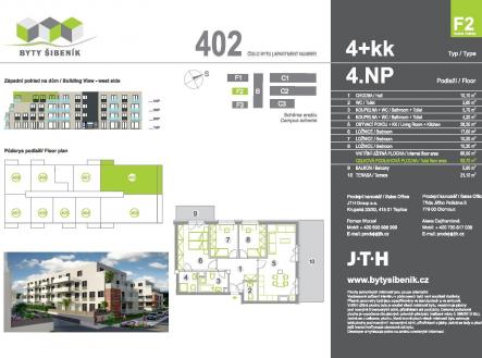 Nové Byty Šibeník navazují na úspěšnou první etapu výstavby bytových domů, která vznikla v městské části Olomouce - Nová Ulice na ulici tř. Jiřího Pelikána. V letech 2019-2021 byly v této lokalitě mezi ulicemi Na Šibeníku a tř. Míru dokončeny tři bytové domy. Na Šibeníku roste čtveřice nízkopodlažních bytových domů F1, F2, F3 a B, které jsou architektonicky řešeny tak, aby svým obyvatelům poskytly zázemí pro klidný rodinný život a zároveň plnily požadavek nadčasovosti, fuknčnosti a vysokého komfortu. Byty budou dokončeny do konce roku 2025 a k předání/ nastěhování budou brzy na jaře 2026. V rámci nové etapy bydlení zde vznikne cirka 200 bytů s dispozicemi 1+kk až 4+kk s podlahovou plochou od 42 m² do 100 m². Prostorový koncept je založen na čtyřech domech o čtyřech nadzemních podlažích. Společně tak s domy první etapy vytvoří atmosféru moderní městské čtvrti. Vnitřní řešení každé z bytových jednotek odpovídá moderním trendům v bydlení. Kuchyně je propojená s obývacím prostorem pro možnost neustálého kontaktu jednotlivých členů rodiny. Byty jsou navrženy s maximálním využitím přirozeného světla do interiéru a mají vlastní terasu nebo balkon. Pro rezidenty budou k dispozici dvoupodlažní garáže pro pohodlné parkování, zástavbu doplní vnitroblok plný výrazné zeleně. Pozn. K bytu je povinné přikoupit dvě parkovací stání v podzemní garáži, jedno za 450.000,-Kč.
