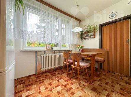 K prodeji bytová jednotka 3+1, 73 m², Olomouc - ulice Mišákova Nabízíme k prodeji prostorný byt 3+1 o užitné ploše 73 m², umístěný v 1. nadzemním podlaží panelového domu s výtahem. Byt je v původním, avšak pečlivě udržovaném stavu a nabízí tak možnost rekonstrukce dle vlastních představ. Součástí bytu je lodžie orientovaná do klidného vnitrobloku, která poskytuje příjemné soukromí, a také sklepní koje. Výborná poloha na ulici Mišákova v Olomouci zajišťuje kompletní občanskou vybavenost v dosahu - přímo naproti domu naleznete základní i mateřskou školu, dětské hřiště a dostatek zeleně pro volnočasové aktivity. Tento byt je ideální volbou pro rodiny s dětmi, investory nebo každého, kdo hledá klidné a přitom praktické bydlení v oblíbené lokalitě.