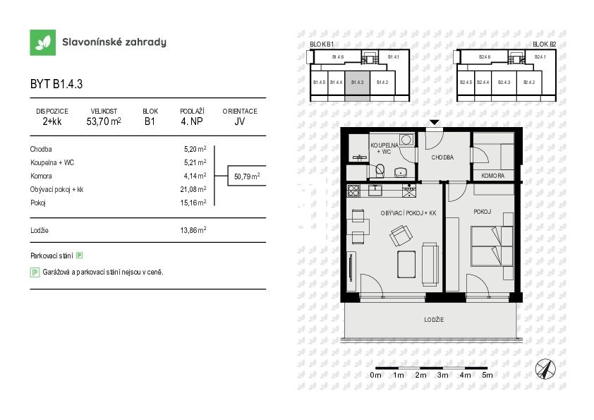 Z pověření developera Vám realitní kancelář ALLE reality&development s.r.o. v exkluzivním zastoupení nabízí již V. etapu úspěšného projektu na ulici Loudova v Olomouci, jež navazuje prodejem – budovy B. Projekt umožňuje svým rezidentům dostupné bydlení v příjemné a klidné lokalitě města Olomouce. Více informací najdete na webových stránkách alle. Byt B1.4.3 o dispozici 2+kk má podlahovou plochu 53,68 m², terasa o velikosti 13,6 m² a nachází se ve 4.NP bytového domu s nízkým počtem bytových jednotek. Velkou předností lokality je dostatek zeleně, odpočinková zóna kolem přírodního rybníku Hamrys, cyklistická stezka, to vše pro čas odpočinku. Skvělá občanská vybavenost, vynikající dostupnost MHD včetně nově prodloužené tramvajové tratě, a bezproblémový výjezd na dálnici naopak usnadní pracovní část dne. Vysoký komfort bydlení je zajištěn moderním standardním vybavením: podlahové vytápění po celé ploše jednotek, obložkové zárubně, vinylové podlahy, keramické obklady - vše dle volby klienta a také základní příprava pro venkovní žaluzie. Garážová stání a komory k dokoupení jsou samozřejmostí. Vyberte si své vysněné bydlení včas! Klient hradí nad rámec kupní ceny poplatek za právní a administrativní servis.