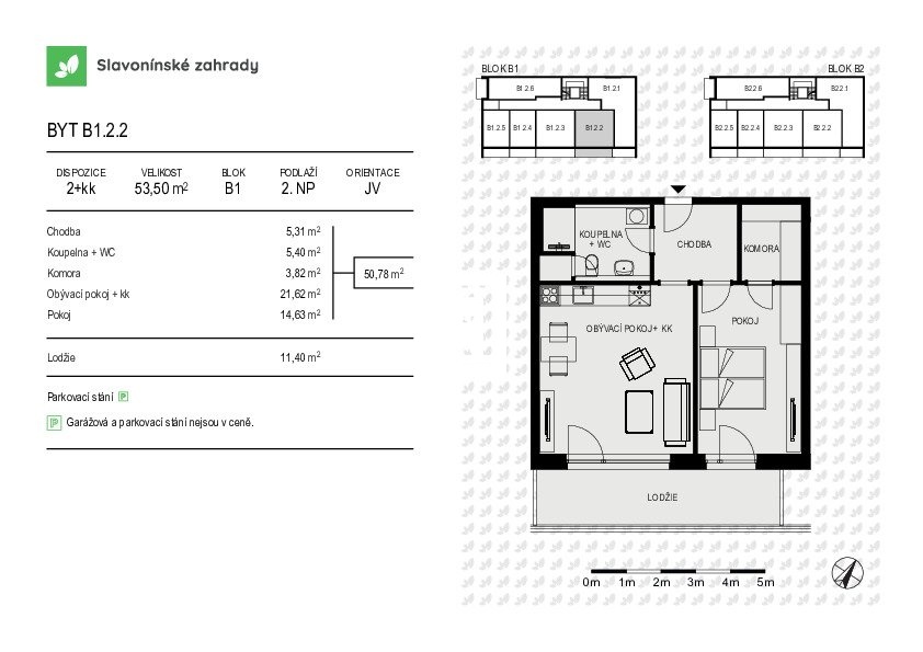 Z pověření developera Vám realitní kancelář ALLE reality&development s.r.o. v exkluzivním zastoupení nabízí již V. etapu úspěšného projektu na ulici Loudova v Olomouci, jež navazuje prodejem – budovy B. Projekt umožňuje svým rezidentům dostupné bydlení v příjemné a klidné lokalitě města Olomouce. Více informací najdete na webových stránkách alle. Byt B1.2.2 o dispozici 2+kk má podlahovou plochu 53,5 m² a terasa o velikosti 11,4 m² se nachází ve 2.NP bytového domu s nízkým počtem bytových jednotek. Velkou předností lokality je dostatek zeleně, odpočinková zóna kolem přírodního rybníku Hamrys, cyklistická stezka, to vše pro čas odpočinku. Skvělá občanská vybavenost, vynikající dostupnost MHD včetně nově prodloužené tramvajové tratě, a bezproblémový výjezd na dálnici naopak usnadní pracovní část dne. Vysoký komfort bydlení je zajištěn moderním standardním vybavením: podlahové vytápění po celé ploše jednotek, obložkové zárubně, vinylové podlahy, keramické obklady - vše dle volby klienta a také základní příprava pro venkovní žaluzie. Garážová stání a komory k dokoupení jsou samozřejmostí. Vyberte si své vysněné bydlení včas! Klient hradí nad rámec kupní ceny poplatek za právní a administrativní servis.