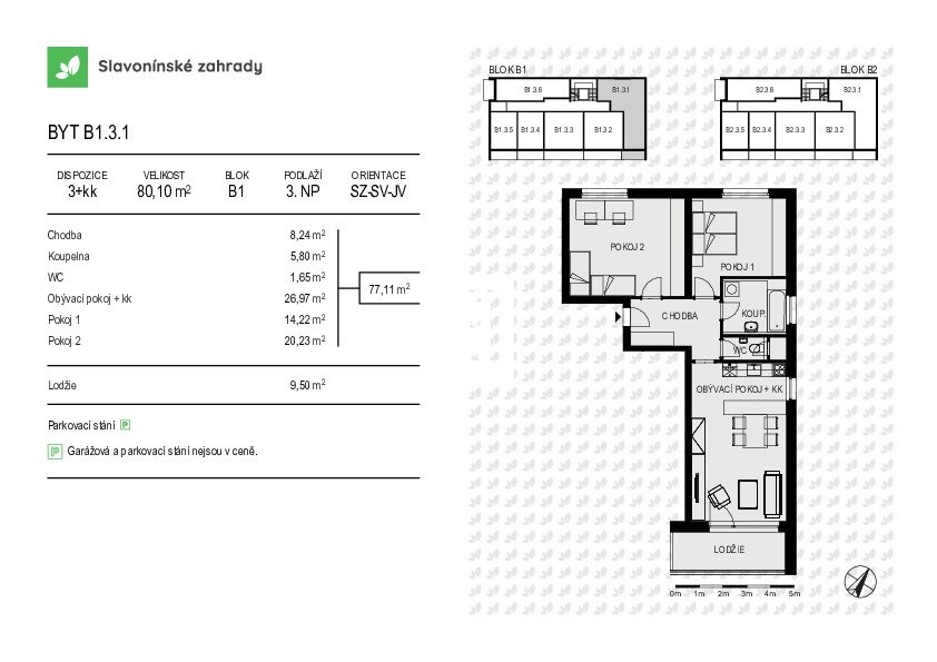 Z pověření developera Vám realitní kancelář ALLE reality&development s.r.o. v exkluzivním zastoupení nabízí již V. etapu úspěšného projektu na ulici Loudova v Olomouci, jež navazuje prodejem – budovy B. Projekt umožňuje svým rezidentům dostupné bydlení v příjemné a klidné lokalitě města Olomouce. Více informací najdete na webových stránkách alle. Byt B1.3.1 o dispozici 3+kk má podlahovou plochu 80,1 m², terasa o velikosti 9,5 m² a nachází se ve 3.NP bytového domu s nízkým počtem bytových jednotek. Velkou předností lokality je dostatek zeleně, odpočinková zóna kolem přírodního rybníku Hamrys, cyklistická stezka, to vše pro čas odpočinku. Skvělá občanská vybavenost, vynikající dostupnost MHD včetně nově prodloužené tramvajové tratě, a bezproblémový výjezd na dálnici naopak usnadní pracovní část dne. Vysoký komfort bydlení je zajištěn moderním standardním vybavením: podlahové vytápění po celé ploše jednotek, obložkové zárubně, vinylové podlahy, keramické obklady - vše dle volby klienta a také základní příprava pro venkovní žaluzie. Garážová stání a komory k dokoupení jsou samozřejmostí. Vyberte si své vysněné bydlení včas! Klient hradí nad rámec kupní ceny poplatek za právní a administrativní servis.