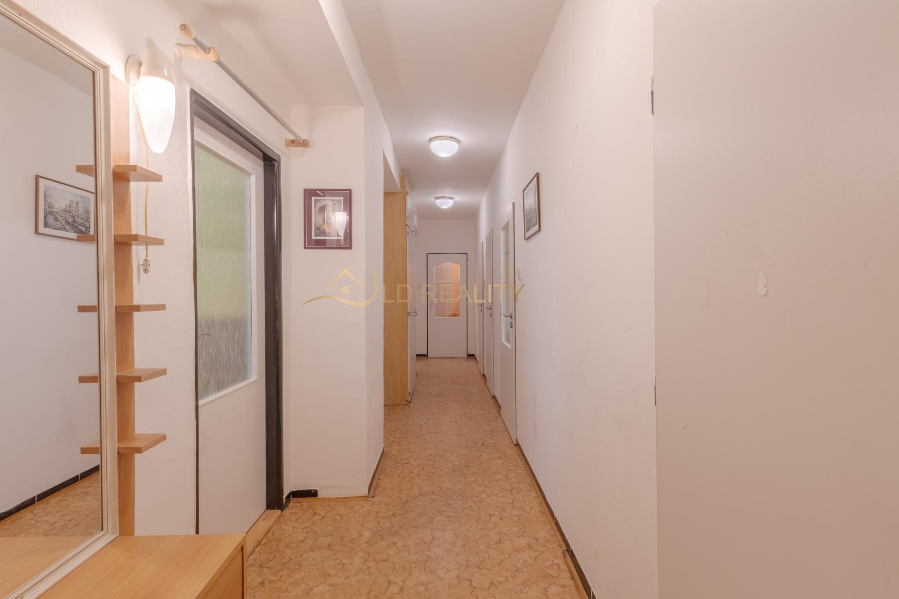 Nabízíme k prodeji prostorný byt o dispozici 4+1 ve zvýšeném přízemí bytového domu na ulici U Soutoku v Olomouci. Celková užitná plocha bytu činí 104,6 m, k bytu dále náleží balkon o velikosti 8,4 m a sklep o výměře 1,6 m. Byt disponuje velmi praktickou dispozicí, kdy jsou všechny pokoje samostatně přístupné a neprůchozí, což zajišťuje dostatek soukromí pro rodinné bydlení i případné investiční využití. Nemovitost je v dobrém, udržovaném stavu, nicméně je vhodná ke kompletní rekonstrukci, která novému majiteli umožní přizpůsobit si bydlení dle vlastních představ. Byt je vybaven plastovými okny, na podlahách jsou parkety v kombinaci s PVC. Vytápění je řešeno centrálním plynovým topením (kotelna v domě). Velkou výhodou je prostorná komora přímo v bytě, kterou lze využít jako šatnu, pracovnu nebo další úložný prostor. Díky své velikosti a dispozici je byt ideální pro rodinné bydlení. Vzhledem k umístění v blízkosti několika fakult se jedná také o zajímavou investiční příležitost s možností následného pronájmu studentům. Bytový dům není zatížen úvěrem a ve fondu oprav je naspořena zajímavá finanční rezerva. Měsíční náklady na bydlení činí přibližně 6 000 Kč. Doporučuji prohlídku této nemovitosti s velkým potenciálem.
