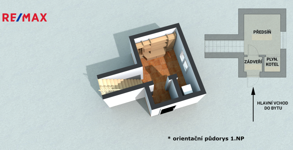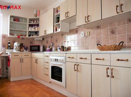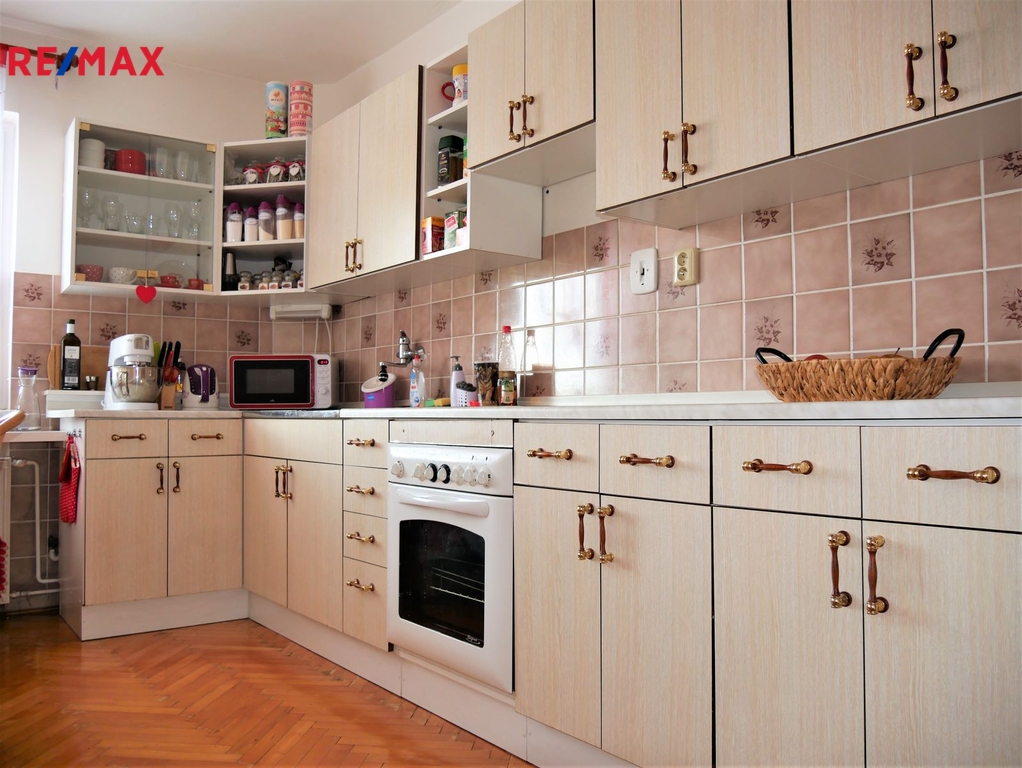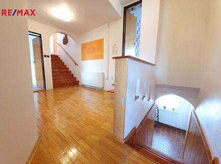 Nabízíme Vám ke koupi pěkný, atypický cihlový byt 4+1 v osobním vlastnictví o celkové výměře 162,70 m2 s pozemky o celkové výměře 456 m2 v krásné a klidné lokalitě na Svatém Kopečku u Olomouce poblíž poutního barokního kostela Baziliky Navštívení Panny Marie s výhledem na věže, dále pamětního domu, kde žil český básník Jiří Wolker a z druhé strany je vyhlídková věž v ZOO Svatý Kopeček. Byt je umístěný ve 2. NP a vstup má zajištěn z 1. NP, kde je umístěno zádveří (prostorná předsíň s umístěným kombinovaným plynovým kotlem) a dřevěným schodištěm do 2. NP. Zde se nachází byt o dispozici 4+1 s balkonem. V 1. PP se nachází prostorný sklep, menší sklípek a technická místnost . Rozpis jednotlivých výměr místností: 1. NP zádveří 7,90 m2 2. NP vstupní hala 8,80 m2, kuchyň 12,10 m2, pokoj 17,15 m2, pokoj 22,10 m2, schodiště s podestou 3,96 m2, koupelna 7,55 m2, WC 1,75 M2, spíž 0,60 m2, pokoj 32,20 m2, pokoj 13,85 m2, dále k bytu náleží balkon o výměře 4,20 m2 a v 1. PP se nachází sklepní prostory o celkové výměře 30,70 m2, kde je také umístěn vodoměr. Ve výlučném užívání vlastníka nabízeného bytu je celý půdní prostor celé budovy nad bytem s vlastním přístupem. Byt se prodává včetně přilehlých pozemků, které v současnosti slouží jako prostorná, udržovaná zahrada, kde je v její horní části umístěná vstupní branka a vjezdová brána s parkovacím stáním pro 1 auto. Dále je zde chodníček, který vede přes zahradu ke vstupním dveřím do bytu. Dále se na zahradě nachází udírna, studna s čerpadlem, dostatečný prostor pro umístění bazénu, kryté zahradní posezení se zahradním domkem k uložení zahradnického nářadí a nádvořím a také vstupy do sklepů náležících pouze k bytu. Předmětné pozemky jsou určeny k výstavbě, dle záměru vlastníka - stavebníka v souladu s platným územním plánem města Olomouc. Součástí fotodokumentace je i vizualizace garáže a parkovacího stání. Tato vizualizace má pouze informativní charakter. Více fotografií najdete na webových stránkách RE/MAX. V případě financování koupě nemovitosti úvěrem doporučujeme využít bezplatné konzultace s naší úvěrovou poradkyní. Pro více informací, případně pro sjednání prohlídky neváhejte kontaktovat makléře této nabídky.