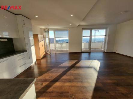 Pronájem 3+kk s velkou terasou, zastřešeným parkovacím stáním a komorou v patře