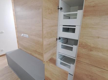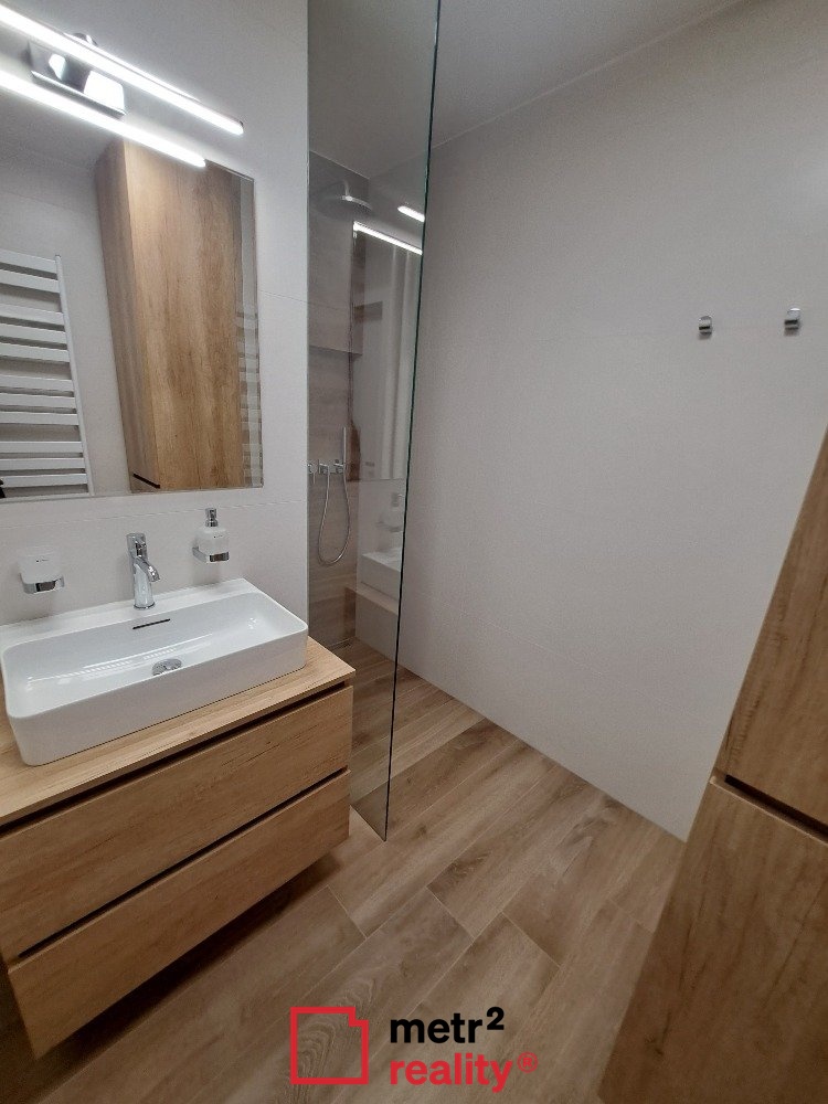 Pronájem kompletně zrekonstruovaného bytu 3+kk, nacházejícího se v klidné lokalitě Olomouce, na ulici U místní dráhy. Tento velmi pěkný, nadstandardně a moderně zrekonstruovaný byt má výměru 63 m2, nachází se v 1. patře čtyřpodlažního cihlového domu bez výtahu, náleží k němu také balkon (3 m2) s orientací do dvorního traktu a sklep v suterénu domu (3 m2). Byt tvoří vstupní chodba, která je vybavena předsíňovou stěnou s úložnou šatní skříní a botníkem, dva neprůchozí pokoje (jeden z nich je vybaven vestavěnou šatní skříní), prostorným obývacím pokojem s TV skříňkou, rozkládací sedačkou, jídelním stolem, židlemi a lavicí. Z obývacího pokoje je otevřený vstup do kuchyňského koutu s kompletně vybavenou kuchyňskou linkou (vestavěná lednice s mrazákem, myčka, pračka se sušičkou, el. trouba, indukční varná deska, digestoř, mikrovlnná trouba). V chodbičce vedoucí k zadnímu pokoji se nachází další vestavěná skříň. Veškeré šatní skříně, úložné prostory a kuchyňská linka jsou vyhotoveny na míru a v nejvyšší kvalitě. Koupelna je zděná s prostorným sprchovým koutem a umyvadlem. Toaleta je samostatná. V bytě je centrální vysavač s pohonnou jednotkou vymístěnou na balkóně, okna do ulice jsou vybavena elektricky ovládanými venkovními žaluziemi. Ve všech pokojích je na podlaze kvalitní dřevěná podlaha. Dům je čistý, s pravidelnou úklidovou službou, nově kompletně zateplený. Nájemné je uvedeno bez záloh na služby, které činí částku 3.170,- Kč / měsíc (voda počítána pro 1 osobu, v případě každé další osoby + záloha 700,- Kč / měsíc), a bez připojení k internetu (optický kabelem s rychlost 250 MB oběma směry + 250 Kč / měsíc). Elektřina bude přepsána na nájemníka. Požadovaná jistota ve výši dvou měsíčních nájmů. Byt je k dispozici ihned. PENB nedodán, z tohoto důvodu uváděna en. tř. G.