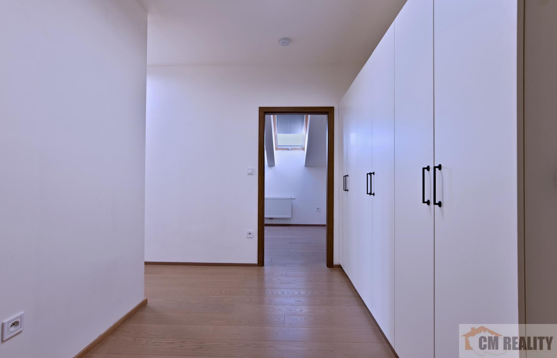 Nabízíme k pronájmu moderně zrekonstruovaný byt 4+kk (82 m) ve 3. patře Rezidence Violka. Byt prošel kompletní rekonstrukcí v roce 2022 a nabízí komfortní, prakticky řešené bydlení v klidném prostředí. Dispozice a vybavení: Srdcem bytu je prostorný obývací pokoj s kuchyňským koutem. Kuchyňská linka je plně vybavená: elektrická trouba, indukční varná deska, myčka, vestavná lednice, digestoř. Z obývacího pokoje je vstup do dvou ložnic, třetí ložnice je přístupná z chodby. V chodbě a jedné z ložnic jsou vestavěné skříně. Koupelna a standard: V koupelně je masážní vana a závěsné WC. Interiér doplňují plovoucí podlahy a designová svítidla. Dům má plastová okna a centrální vytápění včetně ohřevu vody. Další výhody: K bytu náleží sklepní kóje na patře hned vedle bytu. Parkování je možné na parkovišti náležejícím k domu. Náklady: Nájemné: 19.500 Kč / měsíc Zálohy na služby a energie: 4.500 Kč / měsíc (pro 3 osoby) Elektřina: převod na nájemce Podmínky pronájmu: Majitel preferuje nájemce bez psů Kauce: 25.000 Kč Provize RK: 19.500 Kč Byt je ideální volbou pro zájemce, kteří hledají stylové a pohodlné bydlení s dobrou dispozicí a praktickými úložnými prostory.