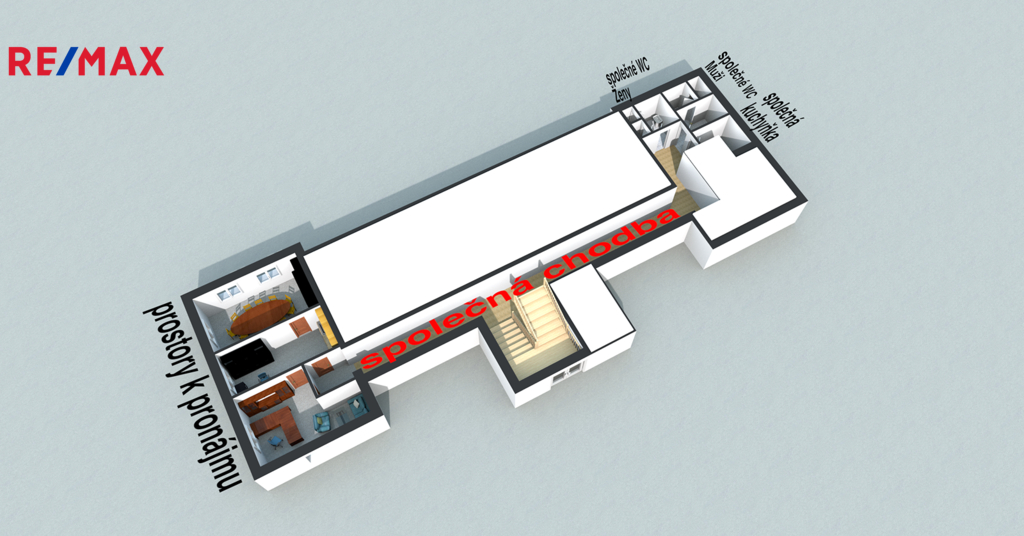 K pronájmu Vám nabízíme nebytový prostor, v současnosti využívaný jako "trojkancelář" o celkové výměře cca 57 m2. Prostor se skládá z předsíňky (cca 4,2m2) vedoucí do dvou místností (18m2 a 14,9 m2) z nichž prostřední je průchozí do třetí místnosti (19,7m2) , nyní využívané jako zasedací místnost. Nabízené prostory se nachází v 1. nadzemním podlaží dvoupodlažní budovy s výbornou dopravní dostupností na Holické ulici v Olomouci. Vytápění je zajištěno kotelnou společnou pro celou budovu, v současnosti je možné vodu (mimo společné zázemí) využívat v prostřední místnosti. K nabízenému prostoru je možné využívat i společné sociální zázemí v druhé části 1.NP budovy, které se skládá z oddělených toalet s umyvadly pro ženy (2x toaleta) a muže (1x toaleta a 2x pisoár) a společné kuchyňky. Ve výši nájemného jsou zahrnuty poplatky za elektřinu a vodu, teplo bude účtováno dle skutečné spotřeby. Majiteli je požadována vratná jistota ve výši jednoho měsíčního nájmu. Provize realitní kanceláři činí 1 měsíční nájem + DPH. Pro více informací nebo sjednání prohlídky neváhejte kontaktovat makléře této nabídky.