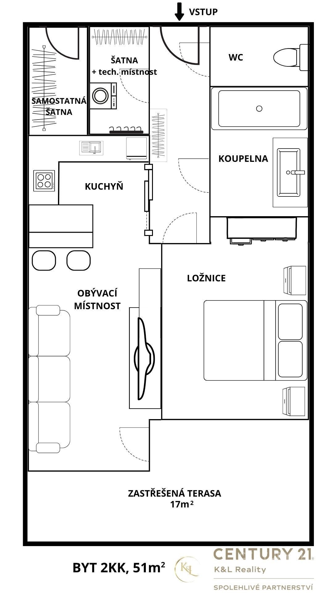 Představujeme vám k dlouhodobému pronájmu prostorný a nadstandardně vybavený byt o dispozici 2+kk a ploše 51 m², situovaný v klidné a žádané lokalitě na ulici Topolová. K dispozici je navíc prostorná krytá terasa o velikosti 17 m² s výhledem do zeleně, která poskytuje příjemné místo pro relaxaci nejen v letních měsících. Byt je kompletně vybavený, v kuchyni naleznete indukční varnou desku, elektrickou troubu, myčku nádobí i vestavěnou lednicí s mrazákem. Dále je k dispozici samostatná toaleta, koupelna s vanou, šatna s úložnými skříněmi na míru a pračkou. Na patře bytu je navíc umístěna praktická komora vhodná k uložení kol, lyží, pneumatik a sezónního vybavení. Další úložný prostor nabídne i šatní skříň na chodbě. Součástí pronájmu je vyhrazené venkovní parkovací stání. Lokalita nabízí vynikající dopravní dostupnost – nájezd na dálnici je vzdálen pouhé 3 minuty jízdy autem, tramvajová zastávka je dostupná pěšky přibližně za 10 minut. V okolí se nachází přírodní lokalita s rybníkem Hamrys a cyklostezkou, ideální pro sportovní i rekreační aktivity. Dům je celkově tichý a dobře udržovaný vhodný pro nájemce, kteří ocení klidné prostředí, vysoký standard a zároveň výbornou dostupnost do centra města. Majitel požaduje nájemce bez zvířat, vhodné jak pro jednotlivce, tak i pár. Pro více informací a prohlídku nás neváhejte kontaktovat.