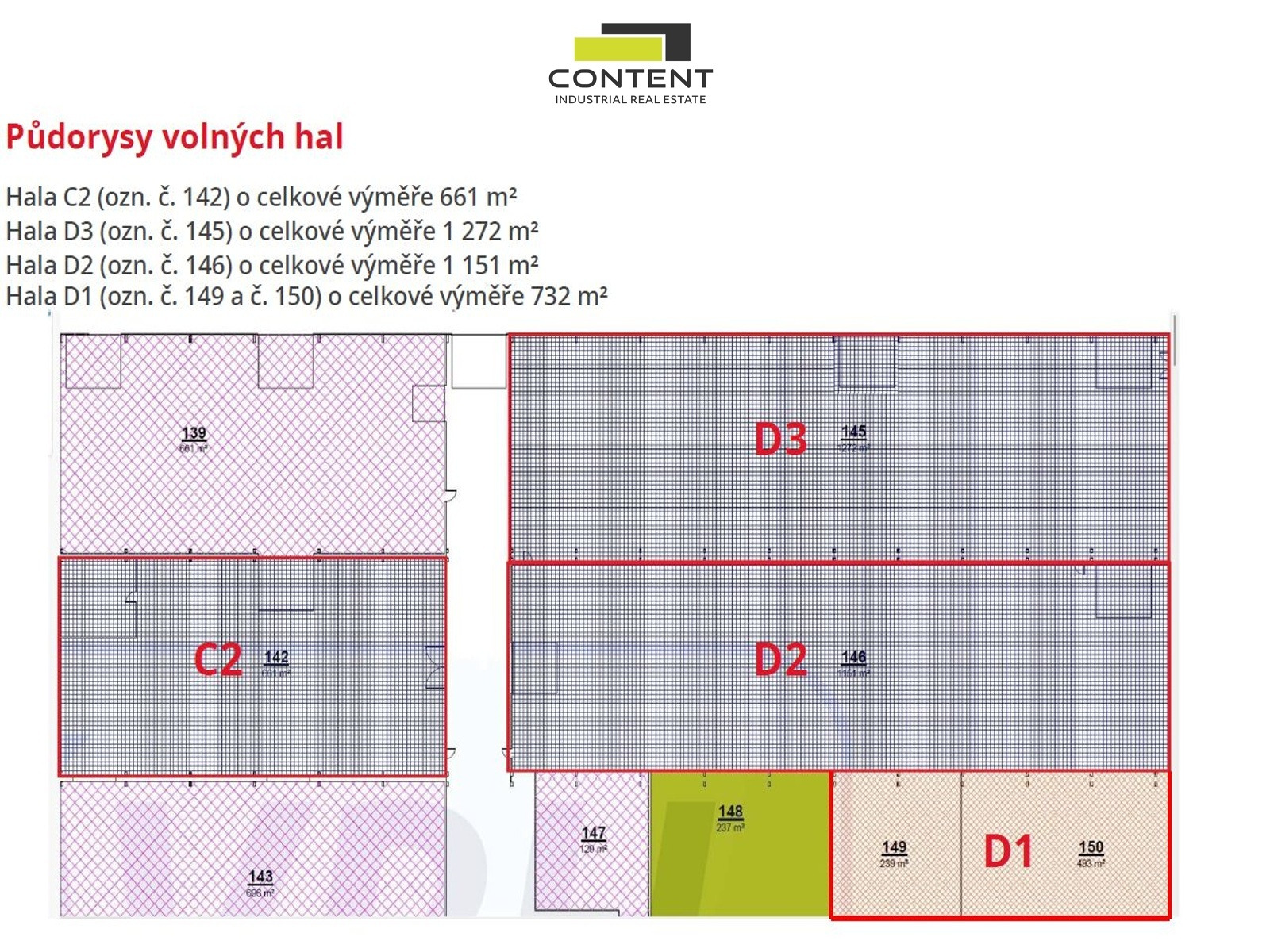 Pronájem skladu, výrobních prostor 661 m², Olomouc - Chválkovice. V zastoupení majitele a bez provize nabízíme industriální prostory po rekonstrukci, s výměrou 661 m², vhodné pro skladování, lehkou strojní výrobu, případně jinou výrobní nebo obchodní činnost. - existující prostory k dispozici 01/07 2026 (hala C2) - železo-betonová podlaha s nosností minimálně 5 t/m² - 1 x vjezd v úrovni terénu 4,5 x 4,5 m, - vnitřní koridor k pronajatým prostorům s vraty 3,5 x 3 m - jeřábová dráha pro možnost instalace portálového jeřábu - světlá výška 6 m - plynové vytápění - manipulační plochy a dostatek parkovacích míst - k dispozici kompletní kancelářské a sociální zázemí dle požadavku - MHD, kamerový systém - ostraha, vrátnice - v areálu k dispozici prostory, až 2423 m² (hala D2 1151 m² a hala D2 1151 m²) Cena skladu Kč 158/m²/měsíc, kanceláře Kč 200/m²/měsíc + energie a služby. Pro více informací nás kontaktujte, rádi zodpovíme Vaše dotazy.