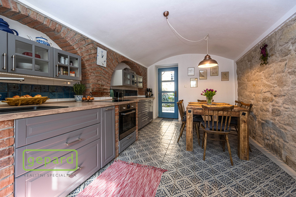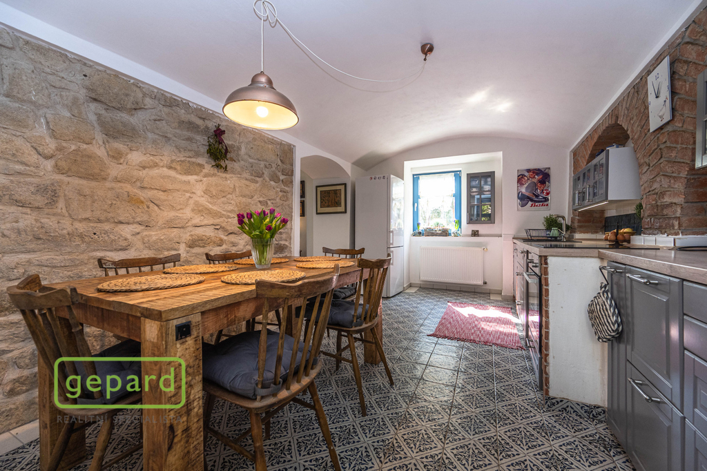 Gepard Reality nabízí ke koupi rodinný dům v obci Olovnice u Kralup nad Vltavou. Dům o dispozici 5+1 s dvěma koupelnami má celkem 164,9m2 podlahové plochy a stojí na vlastním pozemku o výměře 459 m2. Půdorysy obou podlaží najdete ve fotogalerii. Hlavní obytná budova je krásný historický kamenný dům s prvními písemnými zmínkami již z roku 1826, zachovávající původní kamenné prvky a cihlové klenby, které dodávají interiéru jedinečnou atmosféru. Nemovitost prošla v minulých letech citlivou rekonstrukcí, zahrnující mimo jiné i novou pultovou střechu. V lednu 2026 byla instalována nová dřevěná EURO okna s trojskly, která výrazně zlepšují tepelnou i zvukovou izolaci. Dům je napojen na kompletní inženýrské sítě - plyn, elektřina, vodovodní řad a kanalizace. Kromě veřejného vodovodu, je k dispozici i vlastní 18 m hluboká studna, která zajišťuje nezávislý přívod vody. Součástí pozemku je prostorná vedlejší stavba ideální pro kutily —dvoupodlažní kamenný dům, vhodný jako dílna, sklad nebo tvůrčí ateliér. Zajistíme výhodné podmínky financování a případný prodej Vaší nemovitosti.