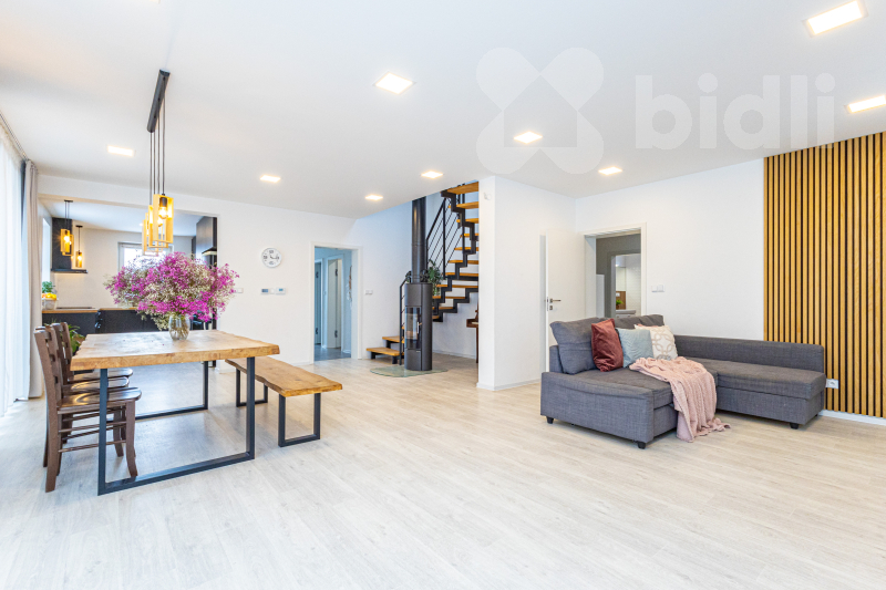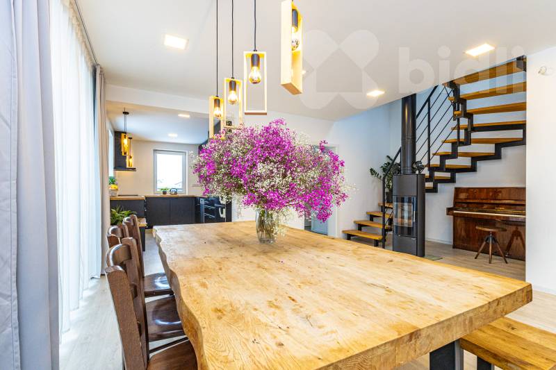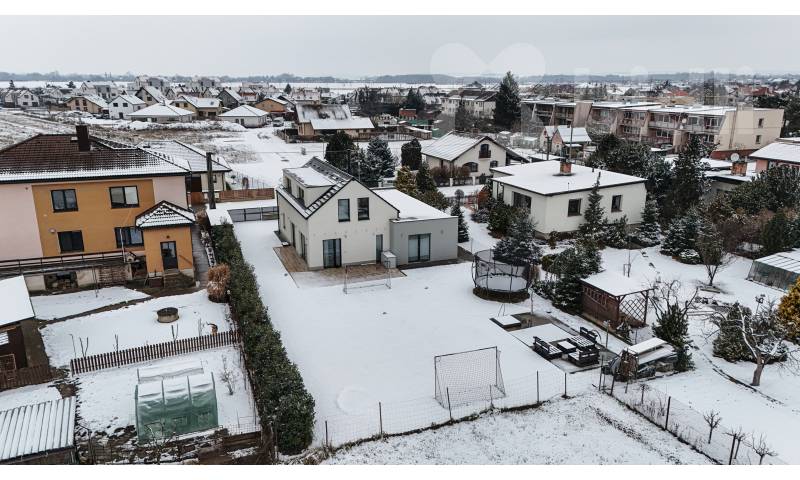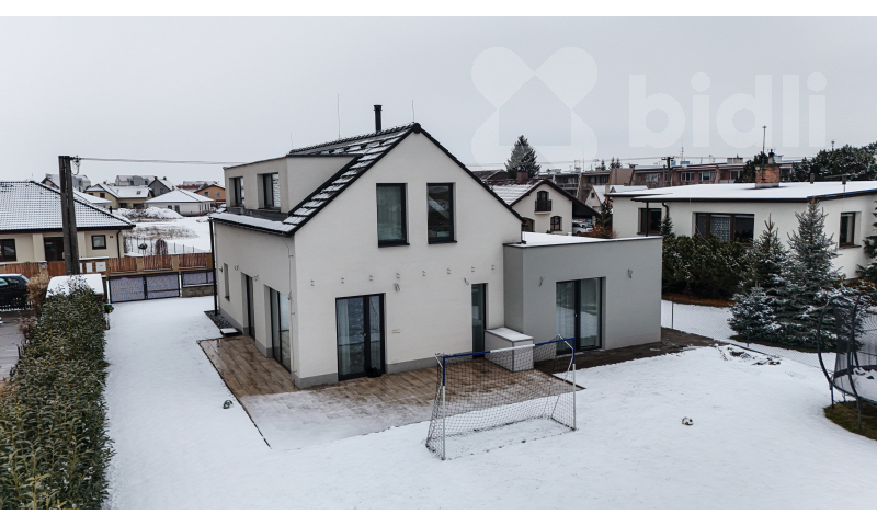 Nabízíme k prodeji novostavbu rodinného domu o celkové ploše 194 m2, na pozemku 785 m2 v klidné části obce Opatovice nad Labem, ulice Školní. Dům nabízí moderní a úsporné bydlení s důrazem na komfort a praktické řešení dispozice. Součástí domu je rekuperace vzduchu, podlahové vytápění napojené na elektrokotel a krbová kamna, která dotvářejí příjemnou atmosféru obytného prostoru a mohou sloužit i jako doplňkový zdroj vytápění. V přízemí domu se nachází vstupní chodba, technická místnost, samostatná toaleta, velkorysý obývací pokoj s kuchyňskou částí o velikosti 56 m2, ložnice, šatna, samostatná koupelna a garáž 25m2. Do patra vystoupáte po schodišti, kde jsou situovány tři samostatné pokoje, další šatna a koupelna. Dispozice domu nabízí dostatek prostoru i úložných možností a je vhodná pro rodinné bydlení. Dům je zasazen na pozemku o výměře 785 m2, který poskytuje soukromí i prostor pro relaxaci. K dispozici je terasa o velikosti cca 60 m2, zavlažovací systém, vrtaná studna, připravená základová deska pro zahradní domek, dřevník, VDSL internet, zpevněné plochy kolem domu a parkovací stání pro více automobilů. Velkou předností nemovitosti je kromě nízkých provozních nákladů, také její poloha na pěkném a klidném místě s výbornou dopravní dostupností. Nájezd na dálnici D35 5 minut, Hradec Králové je vzdálen přibližně 10 minut jízdy a Pardubice zhruba 15 minut. Financování této nemovitosti Vám rádi zajistíme na míru dle Vašich potřeb. Zveme Vás na osobní prohlídku, kde Vás dům přesvědčí svou dispozicí, kvalitou provedení i lokalitou.