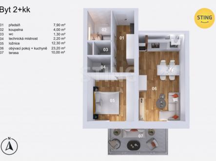 Ve výhradním zastoupení klienta vám představujeme projekt "OASA" na ulici Slezské v Malých Hošticích. Jedná se projekt "Bydlení v zahradě", který bude umístěn v krásné a žádané lokalitě v zastavěné proluce rodinných domu. Dům bude mít rezidenční charakter, prostornou zahradu se vzrostlým sadem a celý prostor bude uzavřen branou na dálkové ovládání. Každý byt je unikátní, byty v přízemí disponují terasou s krásnou předzahrádkou na jižní stranu, stejně tak byty v II. a III.N.P mají vždy luxusní prostornou terasu přístupnou z obývacího pokoje o orientovanou na jih. U vybraných bytů ve III.N.P. budou přiznané dřevěné stropy s loftovým charakterem. Projekt bude nabízet byty 1+KK, 2+KK a 3+KK které budou dodávány na klíč – hotové koupelny a kuchyně včetně spotřebičů, v ceně bytu budou vlastní kóje umístěné v bezprostřední blízkosti bytu. V domě bude myšleno i na bezbariérovost, k dispozici bude výtah. V areálu bude k dispozici zastřešené parkovací stání, které bude možno dokoupit. Zahájení výstavby: 12/2025. Dokončení: 05/2027. Rezervace jsou již otevřeny – kontaktujte nás pro více informací. Byt 2.2