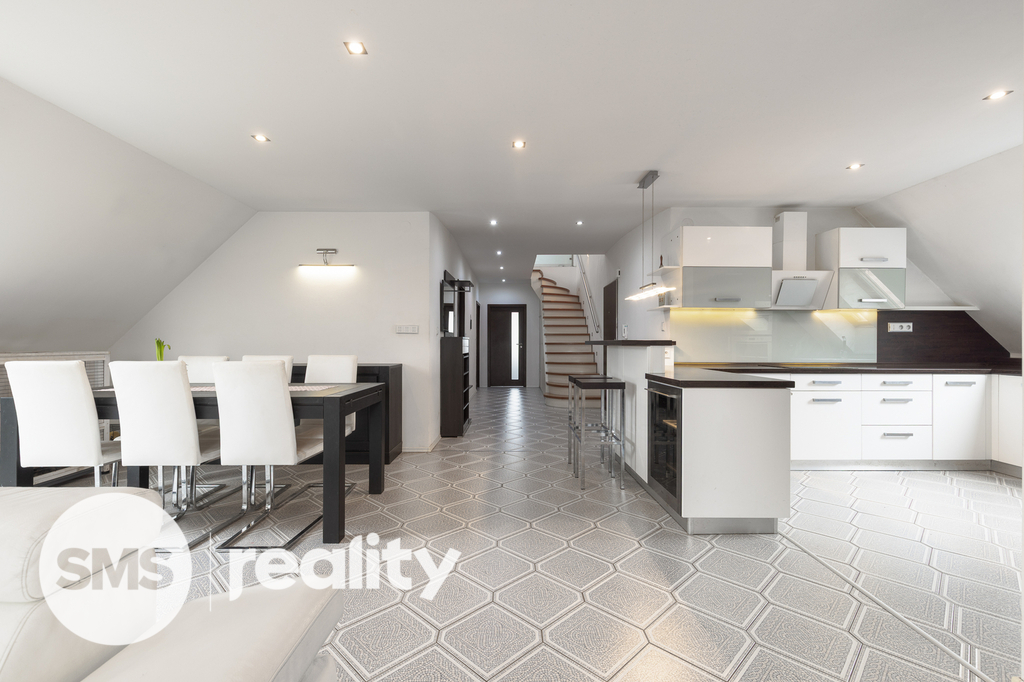 Exkluzivně nabízíme jedinečný mezonetový byt 5+kk se zimní zahradou a vířivkou na adrese Máchova 2 v Opavě. Jedná se o bydlení, které spojuje prostor rodinného domu s výhodami městského bytu. Půdní vestavba ve 4. nadzemním podlaží cihlového domu nabízí soukromí, světlo a atmosféru, která se v běžných bytech prakticky nevyskytuje. Celková užitná plocha činí 175 m² + sklep cca 20m2. Dispozice a řešení prostoru: Spodní patro o velikosti 116 m² je navrženo jako plnohodnotné rodinné bydlení. Najdete zde dětský pokoj, pracovnu, ložnici s vlastní šatnou a dominantní otevřený obytný prostor s kuchyní a jídelnou. Obývací část je skutečně velkorysá, ideální pro rodinný život i návštěvy. Kuchyně nabízí nadstandardní množství pracovní plochy, vestavěné spotřebiče a navazuje na stylovou vinárnu. Na tomto podlaží se dále nachází koupelna se sprchovým koutem i rohovou vanou a samostatné WC. Celý prostor je díky množství střešních oken krásně prosvětlený a působí velmi vzdušně. Z otevřené předsíně vede schodiště do horního patra o velikosti 59 m². Zde se nachází další pokoj a především velká zimní zahrada o 25 m² s vířivkou. Tato část bytu vytváří naprostou klidovou zónu – ideální místo pro relax, domácí wellness nebo odpočinek po práci. Technický stav a vybavení: Kompletní rekonstrukce bytu proběhla v roce 2014 Byt má vlastní kondenzační plynový kotel a podlahové vytápění Kvalitní izolace střechy minerální vatou. Sádrokartonové podhledy. Prostorný sklep. Dům a okolí: Cihlový dům je ve velmi dobrém stavu, zadní část má novou fasádu a plánuje se výměna zvonků. K dispozici je menší společná zahrada. Parkování v modrých zónách přímo před domem. Náklady na bydlení: Fond oprav + splátka úvěru cca 2.000 Kč měsíčně Plyn cca 4.000 Kč Voda cca 500 Kč Elektřina dle spotřeby Proč je byt výjimečný ? Dispozičně nabízí komfort domu – jasně oddělenou denní a noční zónu, velkorysý společenský prostor a vlastní relaxační patro. Zimní zahrada s vířivkou vytváří unikátní atmosféru bydlení, kterou v bytových domech téměř nenajdete. Tato nemovitost není klasický byt. Je to prostor pro život, rodinu i odpočinek – v klidné části Opavy a přitom blízko centra.