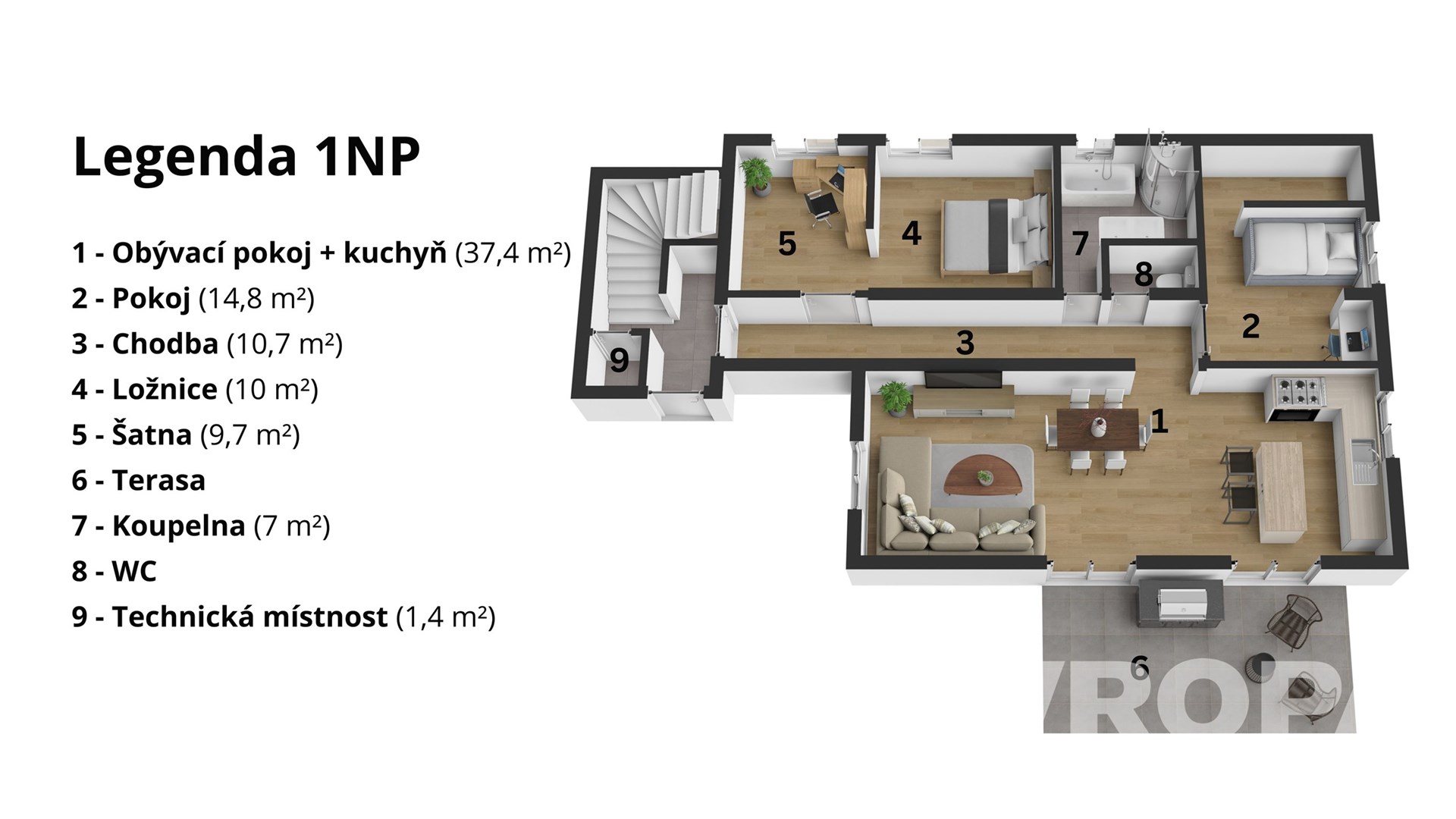 Nabízíme k prodeji exkluzivní rodinný dům v atraktivní části města Opavy, v Jaktaři, na ul. Liliová. Tato unikátní nemovitost, kompletně zrenovovaná v roce 2020, se nachází na pozemku o celkové rozloze 662 m². Z toho zastavěná plocha činí 141 m² a nebytová plocha 58 m². Ideální volba pro rodinu hledající prostorné a komfortní bydlení. Nemovitost se nachází zcela mimo záplavové území „100leté vody“ a ve slepé ulici, mimo ruch města. Dům disponuje dvěma nadzemními podlažími, čímž nabízí komfortní obytný prostor o velikosti 194,6 m², který je efektivně rozložen do dispozice 8 + 2kk. Tato dispozice zajišťuje dostatečný prostor a soukromí pro všechny členy domácnosti. Při rekonstrukci byl kladen velký důraz na kvalitu, funkčnost a design. Prostor laděný do světlých tónů krásně prozařuje denní světlo. V obývacím pokoji se nachází moderně vybavená kuchyň s vestavěnými spotřebiči – indukční varnou deskou, lednicí, mikrovlnnou troubou, elektrickou troubou a myčkou. Nechybí ani designová cirkulační digestoř. Podlahové topení je řešeno samostatnými okruhy pro každé podlaží a v obývací místnosti ve druhém nadzemním podlaží je instalovaná klimatizace, což zaručuje vysoký komfort bydlení po celý rok. Součástí moderního zabezpečení je také elektronický zámek s možností otevírání dveří prostřednictvím smartphonu. K relaxaci a odpočinku slouží 8 m² balkón, krásná 20 m² terasa a pečlivě udržovaná 521 m² zahrada, ideální pro rodinné i společenské aktivity. Součástí pozemku je také 30 m² „kontejner“, využívaný jako nářaďový prostor mimo samotný dům. Na hranici pozemku se nacházejí i další přípojky inženýrských sítí pro možné budoucí rozšíření. Dům disponuje dvěma parkovacími místy. Příjezdová cesta je asfaltová a „slepá“, což zaručuje minimální provoz. Dům je napojen na veřejnou kanalizaci a vodovod. Pro rodiny s dětmi je zde dostatečný výběr škol a sportovních zařízení. Strategická poloha domu poskytuje vynikající dopravní dostupnost od MHD, přes autobus až po vlak a plnou občanskou vybavenost v okolí: banky, úřady, školy, pošty, sportoviště, kultura, obchody, nákupní centrum, restaurace, lékaři a další služby. Pěšky je dostupný také městský park s koupalištěm, workoutovým hřištěm a inline okruhem, který ke sportovnímu městu Opava neodmyslitelně patří. Nemovitost je možné financovat prostřednictvím hypotéky. Jsme otevřeni jednání o ceně. V případě vážného zájmu rádi projednáme individuální podmínky prodeje naším cílem je najít férovou dohodu a nového majitele, který ocení hodnotu tohoto jedinečného domu. Tato exkluzivní rezidenční nemovitost představuje ideální kombinaci vysokého standardu, komfortu a praktičnosti místo, kde se kvalita potkává s domovem.