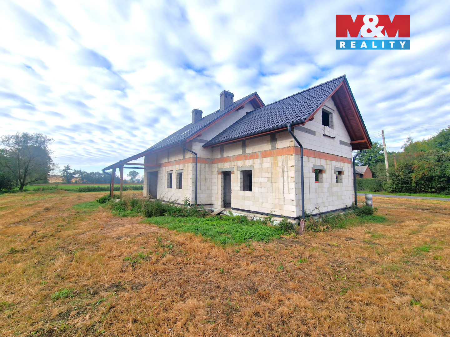 Prodáme rodinný dům o celkové velikosti 160 m2, který se nachází na klidném místě v blízkosti Opavy části Kateřinky, hned za hraničním přechodem. K domu vede obecní asfaltová komunikace, s vjezdem přímo na pozemek. Dům je ve stádiu hrubé stavby, s kompletní střechou z pálených tašek s klempířskými prvky, střešními okny a dvěma komíny. Má praktickou dvojpodlažní vnitřní dispozici 6+kk s koupelnou a WC v každém podlaží, garáží a zastřešenou terasou. Samotná stavba domu je z tvárnic s provedenou hydroizolací základů. Na pozemku je přípojka vody z obecního řádu a elektřina je k připojení u hranice pozemku. Prostorný rovinatý pozemek o celkové výměře 2300 m2. Finální dokončení domu dle vlastních představ. Více informací Vám rádi poskytneme při prohlídce, včetně možností vhodného financování.