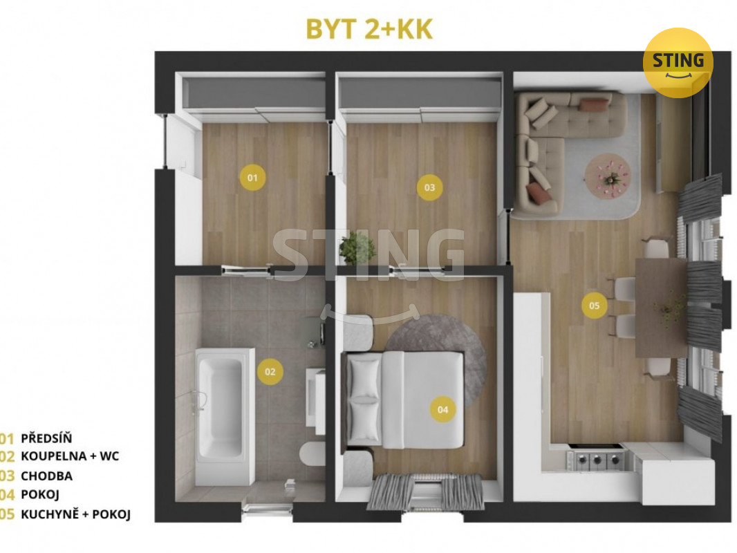 Nabízím k pronájmu krásný byt v 2.NP v Opavě, na ulici Hviezdoslavova o dispozici 2+kk. Byt má rozlohu 52 m2 a skládá se z obývacího pokoje s kuchyňským koutem, samostatného pokoje, koupelny s vanou a WC a ze vstupní a průchozí chodby. Byt prošel rekonstrukcí a nabízí moderní a pohodlné bydlení. Dům je navíc zateplený, díky čemuž jsou náklady na energie výrazně nižší. Parkování je možné přímo u domu. Byt je vytápěn plynovým kotlem, který zajišťuje vytápění celého domu s individuálním rozvodem do každého bytu. Ohřev teplé vody je řešen elektrickým bojlerem. Cena nájmu: 12.500,-Kč + zálohy na služby 3.500,-Kč (na 2 osoby) + 300,-Kč za internet. Kauce a provize RK Pokud Vás tento byt zaujal, neváhejte mě kontaktovat.