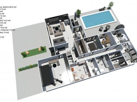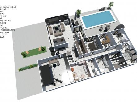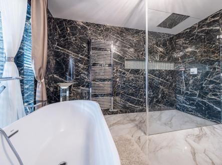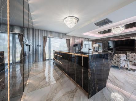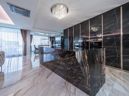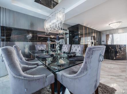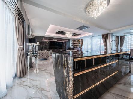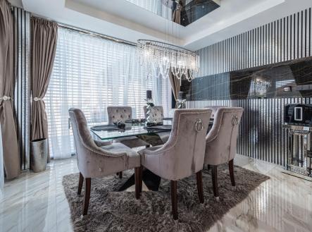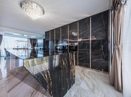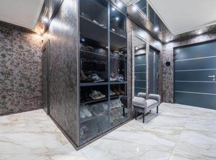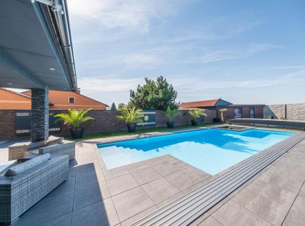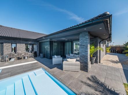Vítáme Vás v prostorách exkluzivní vily nesoucí název Elements. Tato vila voní ještě novotou, byla kolaudována v létě v roce 2022 a z ulice byste jen těžko odhadovali, co ukrývá za svými branami. Její nekompromisní design dělaný v celém domě na míru od renovovaného studia "Elements design" si zaslouží pozornost. Není totiž pro každého! Hledá se extravagantní klient, který ocení, jak luxusní materiály, tak i precizní řemeslné zpracování. Bungalov o velikosti 6+kk a garáží pro dva automobily a zázemím pro všechny náročné nadšence, kteří chtějí mít v domě svůj vlastní pánský prostor, 11ti metrovým krytým vyhřívaným bazénem, v něm vsazeném sezení, vířivkou pro šest osob a všemi nejmodernějšími technologiemi, které současný trh nabízí, má žitnou plochu 241,3 m² a celkovou zastavěnou plochu krásných 288 m². Dům leží na pozemku o výměře 892 m². Dům je vybaven tepelným čerpadlem zn. PROTHERM (země - vzduch), mramorové podlahy vás po celém domě budou hřát díky podlahovému vytápění. Hliníková okna jsou tříkomorová, v obývacím pokoji je PET akustický panel, který pohlcuje veškerý hluk z venku, ostrůvek v kuchyni je vyřezávaný z brazislké žuly a má tvar diamantu, kování veškerého nábytku v domě je značky Blum, spotřebiče zn. Bosh. Celý dům je pak vybaven nábytkem značky KARE. Venkovní elektrické žaluzie na všech oknech jsou pak samozřejmostí. Vjezd do dvora domu je zajištěn hned dvěma branami na elektrické ovládání. Dům má prostornou půdu, kde je udělán další úložný prostor na míru. Každý detail v domě včetně stropů byl dělán s rozmyslem a nenechá nikoho na pochybách, že tady byl při stavbě kladen důraz na detail a už i díky palmám na zahradě si budete připadat jako v jiném světě. Vítejte v oáze klidu, v městečku, které se nachází 8 km od Poděbrad a katastrálně spadá pod město Nymburk. Zde také najdete veškerou občanskou vybavenost nebo pak v nedalekých Poděbradech. Za necelou půl hodinu jste pak na Černé Mostě. Tady si můžete splnit svůj sen o luxusním bydlení. Pojďte se se mnou zasnít a podívat dovnitř. Pokud Vás zajímají detailní informace, ráda Vám pošlu odkaz na samotnou nemovitost nebo si domluvte přímo osobní prohlídku. Těšíme se na Vás.