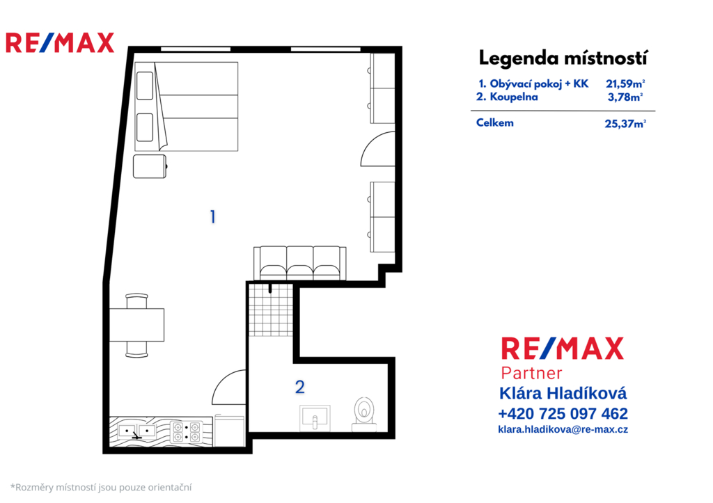 Nabízíme vám k dlouhodobému pronájmu velmi příjemný byt o dispozici 1+kk a celkové výměře 25 m². Byt se nachází v přízemí rodinného domu v obci Ořech, která je ideálním místem pro ty, kteří hledají klidné bydlení s přírodou na dosah, a přitom potřebují mít Prahu v rychlé dojezdové vzdálenosti. Byt je pronajímán zařízený. Veškeré vybavení, které vidíte na fotografiích, bude novému nájemci plně k dispozici. Kuchyňský kout je vybavený sklokeramickou varnou deskou a menší lednicí. V koupelně se nachází sprchový kout, toaleta a nechybí zde ani pračka. Lokalita vyniká skvělou dopravní dostupností. Autobusová zastávka je vzdálená jen pár metrů od domu, přičemž cesta autobusem na stanici metra Luka trvá 12 minut. Pokud míříte přímo do centra, s jedním přestupem se na stanici metra Můstek dostanete za přibližně 30 minut. Parkování je možné před domem. Měsíční poplatky za služby při užívání bytu jednou osobou činí 3 500 Kč a jsou v nich zahrnuty veškeré energie včetně tepla, vody a elektřiny. Byt je ihned k dispozici. Pokud hledáte stabilní bydlení v přátelském prostředí, neváhejte mě kontaktovat pro domluvení prohlídky.