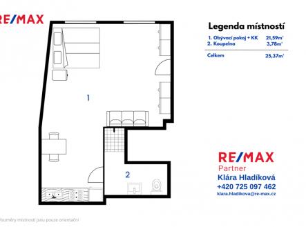 Pronájem bytu, 1+kk, 25 m²