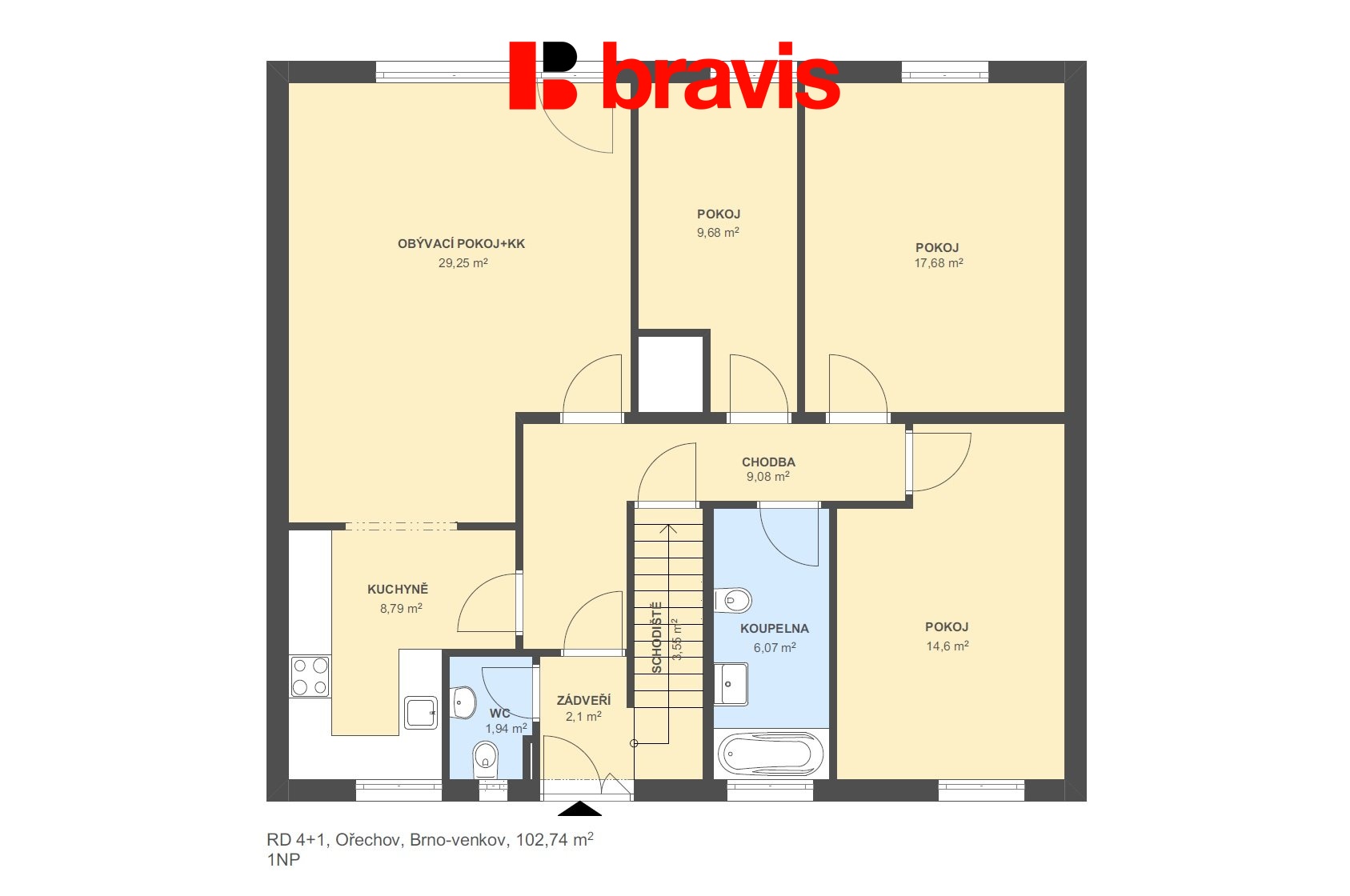 Hledáte nové bydlení mimo ruch Brna, současně však s dobrou dostupností do Brna? Nabízíme Vám dvougenerační dům v žádané lokalitě v obci Ořechov. Ve výhradním zastoupení majitele nabízíme dvougenerační dům pro ty z vás, kteří hledají příjemné bydlení s dobrým spojením do Brna. Ořechov je obec v okrese Brno-venkov, 11 km jihozápadně od Brna, na okraji Bobravské vrchoviny. Jedná se o vinařskou obec ve Znojemské vinařské podoblasti. V roce 2024 se stal Ořechov Vesnicí roku Jihomoravského kraje. V místě slouží ordinace praktické a dětské lékařky, ordinace gynekologická, zubní a lékárna, tři prodejny s potravinami, prodejna masa a uzenin, květinářství, dárkové zboží a šest restaurací. Najdete zde i bohaté vyžití pro sportovce. V neposlední řadě je v obci pamatované i na kulturní zážitky a dění. Jedná se o samostatně stojící RD typu "Okal", podsklepený dům se 2 bytovými jednotkami 4+1 a 3+1, se zahradou, dvorem, park. stání na pozemku, garáží. Původní dům byl budovaný v cca roce 1985. Po celou dobu byl dům průběžně udržovaný a upravovaný. Dům je ihned obyvatelný, nicméně modernizace a případná rekonstrukce je na zvážení. ZP 295 m2, zahrada 1071 m2, CP pozemku 1417 m2. Zahrada u domu je částečně okrasná, částečně užitková. Najdete zde přístřešky, přístavby, dílnu a další vedlejší stavby. Dům je montovaný ze sendvičových panelů, zateplený. Střecha – sedlová s dřevěným krovem, krytina betonová taška. Klempířské konstrukce - pozinkovaný plech. Venkovní obklady - kabřinec. Schodiště v domě - dřevěné. Okna – plastová. V některých oknech jsou sítě proti hmyzu. Vytápění a ohřev teplé vody jsou řešené plynovým kotlem s rozvodem radiátorů. Podlahy – laminátová plovoucí podlaha, dlažba, PVC, koberce. Internet zavedený. Dům je napojený na všechny IS. Dispozice domu: 1.NP – vstup do domu se zádveřím,chodba, schodišťový prostor, kuchyně, 4x pokoj, koupelna s WC, samostatná toaleta, 2.NP – schodišťový prostor, kuchyně, 3x pokoj, koupelna a toaleta, 1.PP - sklepní prostory. Prodávající si vyhrazuje právo vybrat si kupujícího na základě zvolených kritérií. Rychlý a kvalitní právní, hypoteční a daňový servis (znalecké posudky, PENB) je u nás samozřejmostí. K dispozici dohodou. Pro další informace a žádost o prohlídku kontaktujte níže uvedeného makléře. Doporučujeme. S ohledem na legislativní požadavek jeho zveřejnění, musí být nemovitost označena v en. třídě "G", což ovšem neznamená, že do této en. třídy opravdu patří.