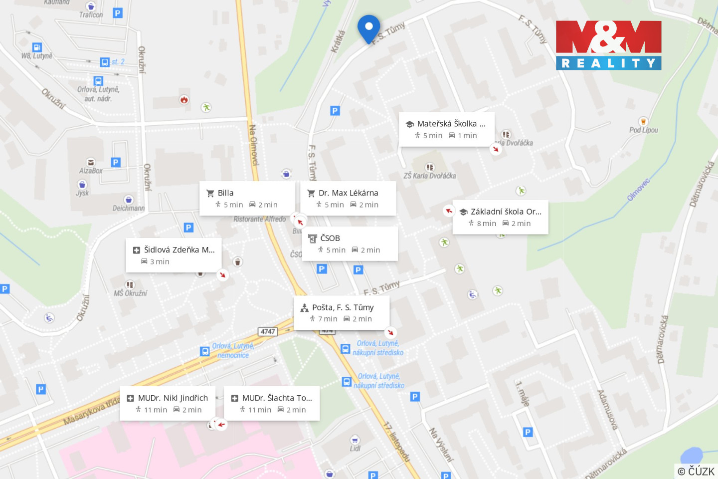 Nabízíme byt 3+1 o velikosti 62,44 m² v revitalizovaném panelovém domě na ul. F. S. Tůmy v Orlové. Byt se nachází v 7. podlaží a prošel rekonstrukcí – zděné jádro, moderní kuchyňská linka se spotřebiči, nové omítky, interiérové dveře, vinylové podlahy i vestavěné skříně. Dispozice s neprůchozími pokoji zajišťuje dostatek soukromí, praktická komora pak vítaný úložný prostor. Součástí je také zasklená lodžie orientovaná z obývacího pokoje. Dům má za sebou celkovou revitalizaci, upravené společné prostory i nové zasklení lodžií. Lokalita nabízí kompletní občanskou vybavenost v docházkové vzdálenosti – školy, obchody, zdravotní služby, sportoviště i MHD. Byt je vhodný jak pro vlastní bydlení, tak pro investici s možností pokračování stávajícího nájemního vztahu se spolehlivými nájemníky. Příjemné, udržované prostředí a výborná dostupnost činí z této nabídky atraktivní příležitost.