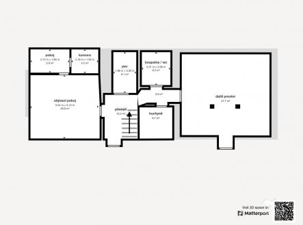 Představuji k prodeji chalupu se stodolou a zahradou v obci Ošelín na Tachovsku. Pro lepší představu o chalupě je Vám k dispozici i 3D virtuální prohlídka, video prezentace a fotogalerie včetně záběrů pořízených dronem. Ucelenou prezentaci pak můžete zhlédnout na odkaze, který je součástí video prohlídky. Lokalita: Ošelín je klidná obec uprostřed krásné přírody, nabízející ideální podmínky pro odpočinek a rekreaci, s velmi dobrou dopravní dostupností (po dálnici z Plzně 40 minut, z Německa necelých 30 minut a Stříbro či Tachov 15 minut jízdy autem, vlaková zastávka Ošelín na železniční trati Plzeň – Cheb, linkový autobus). V Ošelínu se nachází obecní úřad, koloniál, obecní knihovna, hostinec a kulturní sál, obec Svojšín s kompletní občanskou vybaveností je vzdálen 5 minut jízdy autem. V blízkém okolí je navíc řada turistických tras a cyklostezek. Dispozice stavby: Chalupa se nachází na okraji obce v její klidné části. Má 2 nadzemní podlaží. Je o dispozici 3+kk a celkové užitné ploše 153 m². Součástí chalupy je dále v přízemí koupelna s WC, komora, předsíň, veranda a krásná historická konírna s posezením a kamny, v prvním patře předsíň a vstup do velkých půdních prostor o výměře 87 m2 s možností úpravy na obytné prostory. V chalupě se rovněž nachází historická pec. Technické informace: Do chalupy je přivedena elektřina, voda je jednak obecní a jednak ze společné studny, kanalizace je svedena do septiku, vytápění je řešeno 2 krbovými kamny (s příp. elektrickým přímotopem) a ohřev vody elektrickými průtokovými ohřívači. Elektřina je k dispozici jak 230 V, tak i 400 V. Chalupa je zděná (smíšené zdivo). Pozemek: Prostorná chalupa je umístěna na pozemku o celkové rozloze 2210 m² . K dispozici je udržovaná zahrada, dále na pozemku nalezneme velkou stodolu o výměře 124 m² se zavedenou elektřinou (možno využít na uskladnění věcí i jako garáž), samostatný sklep a sad se vzrostlými ovocnými stromy. Chalupa s konírnou a stodolou na velkém pozemku jsou díky své velikosti jakož i zajímavé lokalitě vhodné nejen k relaxaci, ale rovněž k případným podnikatelským záměrům. Stodola může být ideální pro pořádání společenských akcí jako např. svatby, chalupa s konírnou pak poskytují skvělé zázemí (ubytování, restaurace). V minulosti bylo současným majitelem řešeno rovněž dokoupení sousedního pozemku, díky čemuž by se celková plocha ještě zvětšila a nabízela by se celá řada dalších využití. Jelikož se jedná o stavbu pro rodinnou rekreaci, která je užívána jen část roku, a tak není nutné PENB předkládat, je uvedena třída G. Pokud hledáte klidné místo k relaxaci v obklopení krásné přírody, a přesto na dosah města s občanskou vybavenosti, anebo poptáváte nemovitost pro zajímavé podnikatelské využití, může být tato chalupa se stodolou a velkou zahradou vhodná právě pro vás. Zavolejte mi, prosím, pro domluvení prohlídky. Mgr. Lukáš Pytlík TAURUM reality Uvedené výměry jsou orientační.