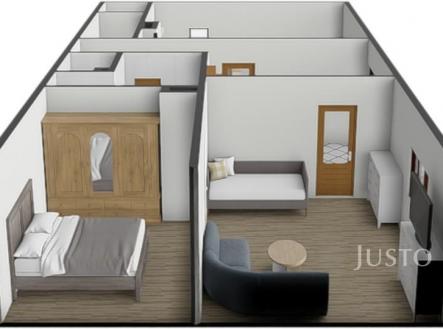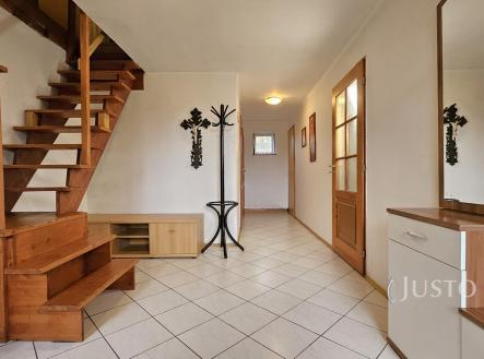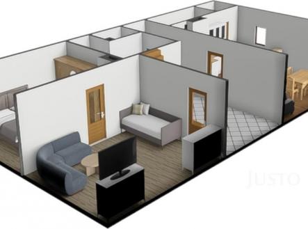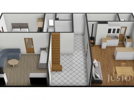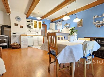 V zastoupení majitele nabízíme udržovaný rodinný dům o dispozici 4+1 v klidné jihočeské obci Tukleky, jen několik minut jízdy od Písku. Dům je samostatně stojící, podsklepený, s menší zahradou, stodolou, přístřeškem a nadzemním bazénem – ideální volba pro klidné bydlení nebo rekreaci. Vstupní hala působí vzdušně a prostorně. Na pravé straně domu se nachází obytná kuchyně se spíží, na levé straně obývací pokoj a ložnice. V obývacím pokoji jsou krbová kamna. V podkroví jsou situovány dva samostatné pokoje a volný půdní prostor s možností dalšího rozšíření. Zdroj vody je z vlastního vrtu (38 m), vytápění zajišťuje ústřední topení na tuhá paliva a krbová kamna v kuchyni. Kanalizace je do tříkomorové jímky s přepadem do obecní kanalizace. Střecha je nová - pálená taška, fasáda zateplená. Součástí prodeje je také stodola, sklep a přístřešek pro posezení. Na udržované zahradě je nadzemní bazén a několik okrasných dřevin. Celkově působí dům velmi útulně a klidně – ideální prostředí pro rodinnou rekreaci nebo pohodové trvalé bydlení. V posledních letech využíval majitel dům ke krátkodobým, rekreačním pronájmům. V případě zájmu je možné stejné využití. Výměry: Přízemí – 77,5 m² • předsíň 12 m² • chodba 3,8 m² • kuchyně s jídelní částí 23,7 m² • spíž 1,6 m² • obývací pokoj 18 m² • ložnice 11,6 m² • koupelna 5,4 m² • WC 1,4 m² Podkroví – 70,5 m² • chodba 6,6 m² • pokoj 10,8 m² • pokoj 10,8 m² • komora 4 m² • půda 38,3 m² Celková užitná plocha domu: 148 m²