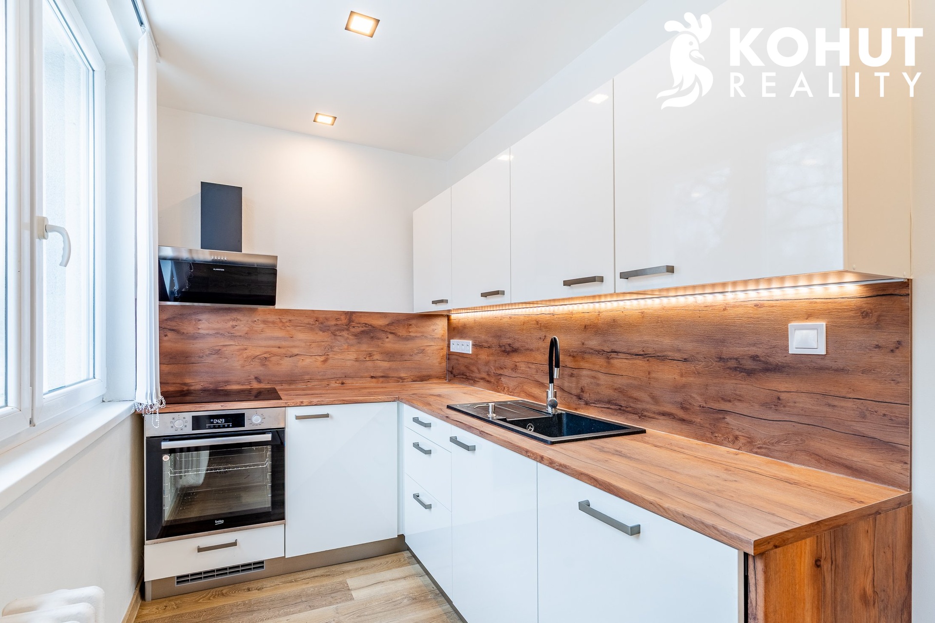 Dovoluji si Vám nabídnout ke koupi kompletně zrekonstruovaný byt o dispozici 2+1 v Ostravě Zábřehu na Výškovické ulici. Byt se nachází v 1. nadzemním podlaží revitalizovaného panelového domu. Byt prošel rozsáhlou rekonstrukcí jak kuchyně - nová linka včetně všech spotřebičů, tak koupelny, která je zděná. V domě jsou nová plastová okna, podlahy, elektroinstalace i omítky. Byt je částečně zařízen ( spotřebiče v kuchyni včetně ledničky, postel s matracemi v ložnici a konferenční stolek v obývacím pokoji). Na oknech jsou instalovány vnitřní žaluzie. Byt je v osobním vlastnictví a je určen k okamžitému užívání, ať už jako investice, nebo vlastní bydlení.