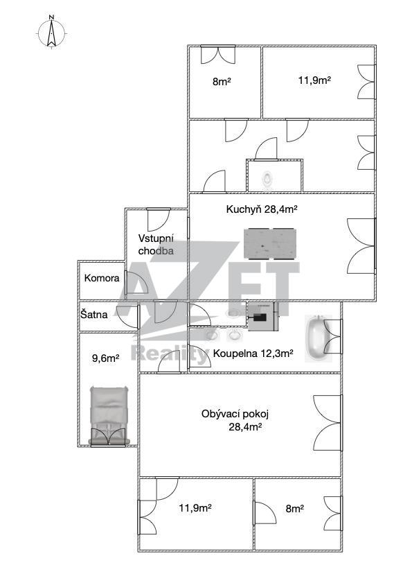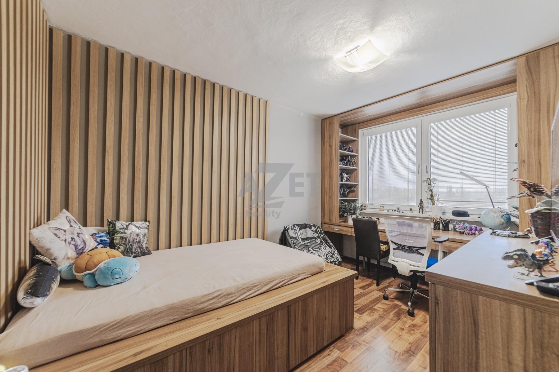 Nabízíme k prodeji atypický a mimořádně prostorný byt o dispozici 6+1, který vznikl spojením dvou bytových jednotek. Celková podlahová plocha 148 m poskytuje komfort srovnatelný s rodinným domem a to při zachování všech výhod bytového bydlení. Dispozice bytu je promyšlená a nabízí dostatek soukromí i komfortu v podobě prostorné koupelny s oknem vedle vany a sprchovým koutem, dvě samostatné toalety, 2x komora/šatník a šest pokojů. Byt prošel kompletní rekonstrukcí s důrazem na moderní design, praktičnost a dlouhodobou užitnou hodnotu. Dominantou bytu je velkorysá moderní kuchyň, vybavená vestavěnými spotřebiči: myčkou nádobí, vestavěnou mikrovlnnou troubou, troubou na pečení i parní troubou, která uspokojí i náročné milovníky vaření. Byt je plně bezbariérový a nachází se v posledním (8.) nadzemním podlaží domu s bezbariérovým výtahem, což zajišťuje klid, soukromí a příjemný výhled. Velkou výhodou je oplocený areál domu, který nabízí dvě parkovací místa náležející k bytu, venkovní posezení a dětské hřiště. K dispozici je prostorný sklepní prostor(cca 14m). Na jaře 2026 je plánována rekonstrukce domu v podobě zateplení, výměny velkých oken v kuchyni a obývacím pokoji, čímž se naskytne ideální příležitost pro vznik balkónu. Díky své velikosti a dispozici je byt vhodný pro větší rodinu, vícegenerační bydlení nebo kombinaci bydlení a práce z domova. Pro více informací a případnou prohlídku kontaktujte makléře.