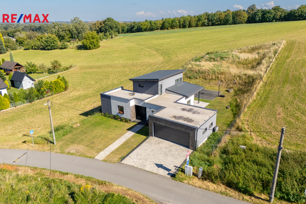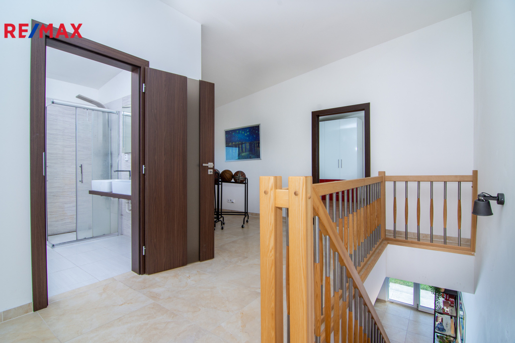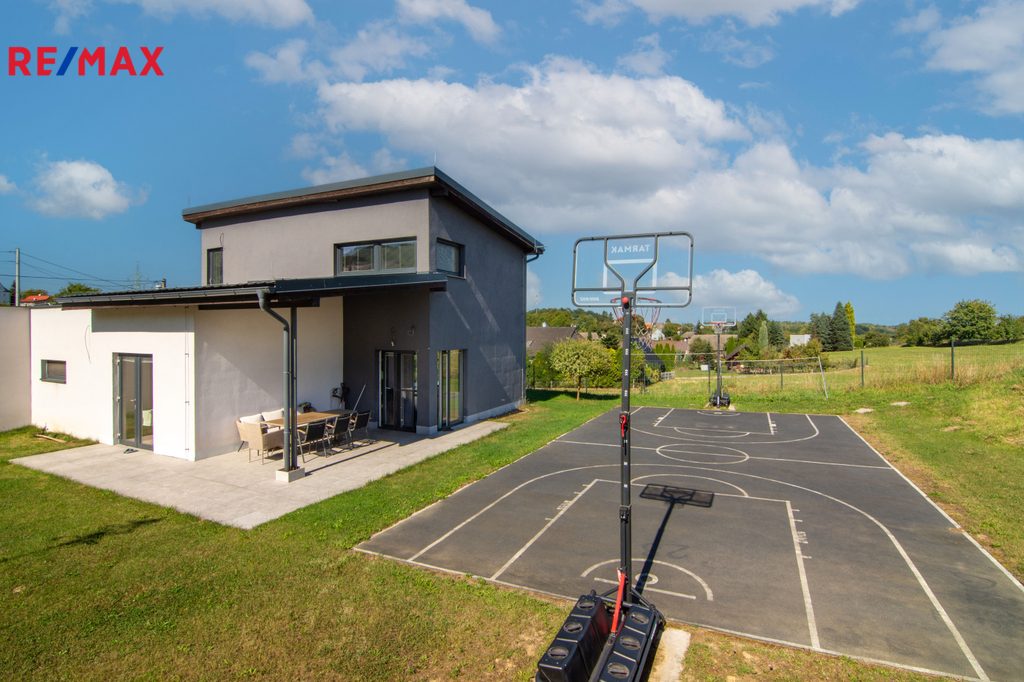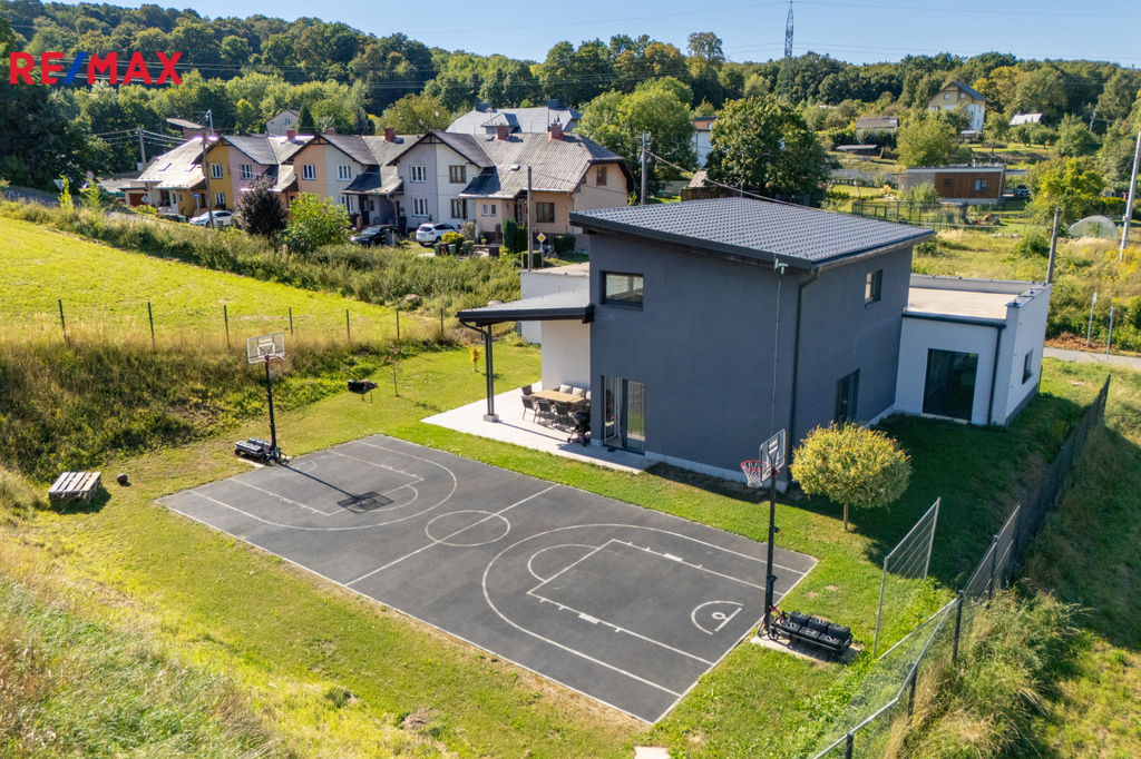 Moderní rodinný dům z roku 2019, v klidné části Ostravy, který nabízí komfortní bydlení spojené s dostatkem prostoru i soukromí. Dům má zastavěnou plochu 205 m² a je umístěn na pozemku o velikosti 1 371 m². Dispozice domu je promyšlená tak, aby splňovala nároky celé rodiny. V přízemí se nachází prostorný obývací pokoj propojený s kuchyní (48 m2), kde originálně zapuštěná sedací souprava vytváří jedinečný prvek interiéru. Z kuchyně i ložnice (17 m2) je přímý vstup na terasu. Hlavní ložnice má svou vlastní luxusní koupelnu (8 m2) s vanou, sprchovým koutem a dvěma umyvadly, další dva pokoje (16,8 m2 a 9,2 m2) doplňuje koupelna (4,6 m2) s vanou a WC. V patře se rozprostírá velký pokoj (22,6 m2), který lze využít jako hernu, pracovnu či kombinaci obojího, nechybí ani prostorná chodba (17,8 m2) a další koupelna (5 m2) se sprchovým koutem a WC. Součástí domu je velká zahrada, která nabízí volnost pro úpravy podle představ nového majitele. Na pozemku se nachází terasa pro venkovní posezení a vlastní basketbalové hřiště vyrobeno z vysoce kvalitního polyreutanu. Parkování je zajištěno v garáži (44 m2) pro dva vozy a na dalších dvou venkovních stáních před domem. Technické zázemí domu splňuje požadavky moderní doby – klimatizační systém zajišťuje vytápění i chlazení a je napojen na všechny místnosti v domě. K dispozici je indukční varná deska, plastová okna, napojení na veřejný vodovod a elektřinu (230 V). Odpad je řešen soukromým septikem, přičemž v letech 2026–2027 se plánuje výstavba veřejné kanalizace. Provozní náklady činí přibližně 5 600 Kč měsíčně za elektřinu a 600 Kč za vodu. Dům se nachází v tiché a příjemné části obce, která zároveň zajišťuje dobrou dostupnost do centra Ostravy i na hlavní dopravní tahy. Jedná se o ideální volbu pro rodinu, která hledá moderní, prostorné a originální bydlení s možností aktivního trávení volného času na vlastním pozemku. Z právních důvodů je uvedena energetická třída G (bez PENB), realita však odpovídá nižší energetické náročnosti. V domě byl instalován rekuperátor energie v ceně 400 000 Kč a nyní jsou platby cca 5 500 Kč měsíčně za veškeré náklady na vytápění, ohřev vody atd.