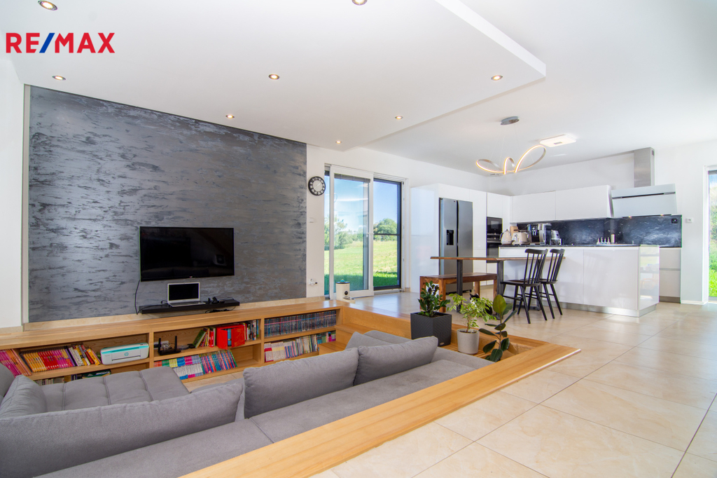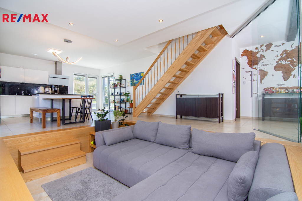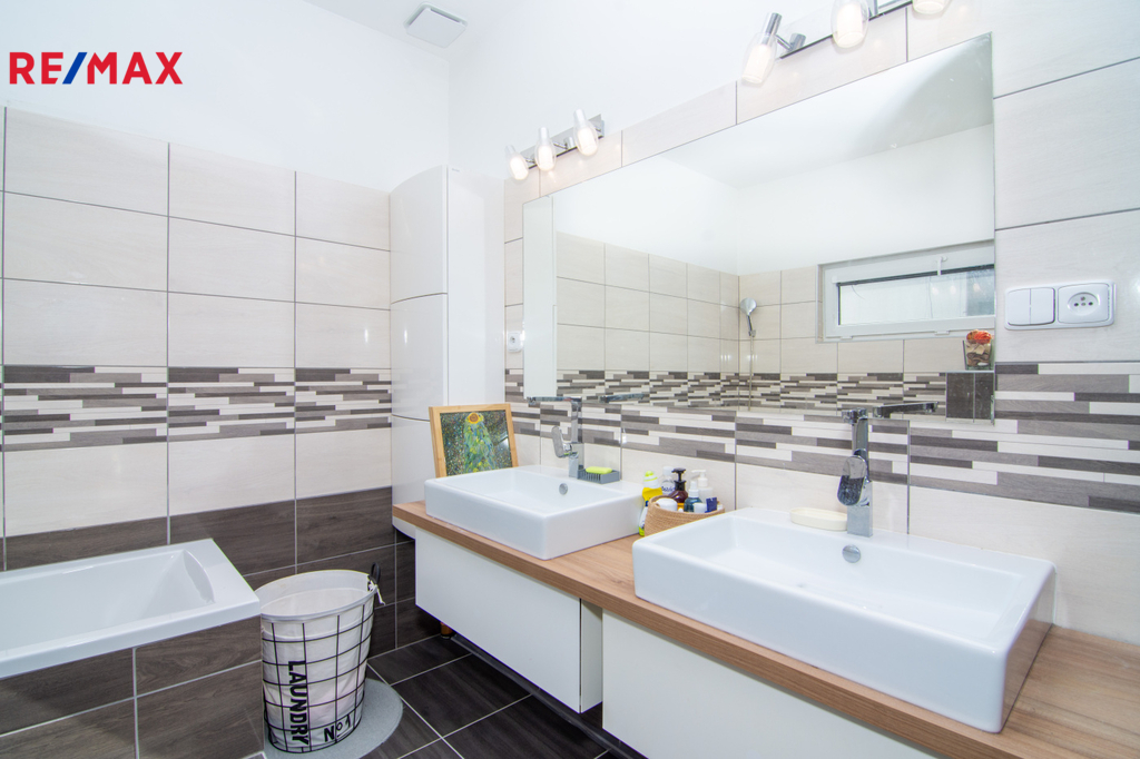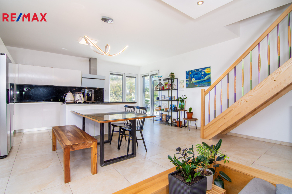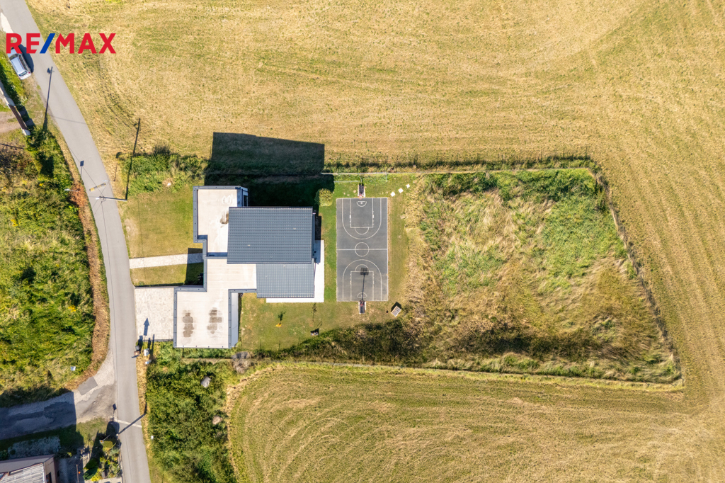 Moderní rodinný dům z roku 2019, v klidné části Ostravy, který nabízí komfortní bydlení spojené s dostatkem prostoru i soukromí. Dům má zastavěnou plochu 205 m² a je umístěn na pozemku o velikosti 1 371 m². Dispozice domu je promyšlená tak, aby splňovala nároky celé rodiny. V přízemí se nachází prostorný obývací pokoj propojený s kuchyní (48 m2), kde originálně zapuštěná sedací souprava vytváří jedinečný prvek interiéru. Z kuchyně i ložnice (17 m2) je přímý vstup na terasu. Hlavní ložnice má svou vlastní luxusní koupelnu (8 m2) s vanou, sprchovým koutem a dvěma umyvadly, další dva pokoje (16,8 m2 a 9,2 m2) doplňuje koupelna (4,6 m2) s vanou a WC. V patře se rozprostírá velký pokoj (22,6 m2), který lze využít jako hernu, pracovnu či kombinaci obojího, nechybí ani prostorná chodba (17,8 m2) a další koupelna (5 m2) se sprchovým koutem a WC. Součástí domu je velká zahrada, která nabízí volnost pro úpravy podle představ nového majitele. Na pozemku se nachází terasa pro venkovní posezení a vlastní basketbalové hřiště vyrobeno z vysoce kvalitního polyreutanu. Parkování je zajištěno v garáži (44 m2) pro dva vozy a na dalších dvou venkovních stáních před domem. Technické zázemí domu splňuje požadavky moderní doby – klimatizační systém zajišťuje vytápění i chlazení a je napojen na všechny místnosti v domě. K dispozici je indukční varná deska, plastová okna, napojení na veřejný vodovod a elektřinu (230 V). Odpad je řešen soukromým septikem, přičemž v letech 2026–2027 se plánuje výstavba veřejné kanalizace. Provozní náklady činí přibližně 5 600 Kč měsíčně za elektřinu a 600 Kč za vodu. Dům se nachází v tiché a příjemné části obce, která zároveň zajišťuje dobrou dostupnost do centra Ostravy i na hlavní dopravní tahy. Jedná se o ideální volbu pro rodinu, která hledá moderní, prostorné a originální bydlení s možností aktivního trávení volného času na vlastním pozemku. Z právních důvodů je uvedena energetická třída G (bez PENB), realita však odpovídá nižší energetické náročnosti. V domě byl instalován rekuperátor energie v ceně 400 000 Kč a nyní jsou platby cca 5 500 Kč měsíčně za veškeré náklady na vytápění, ohřev vody atd.