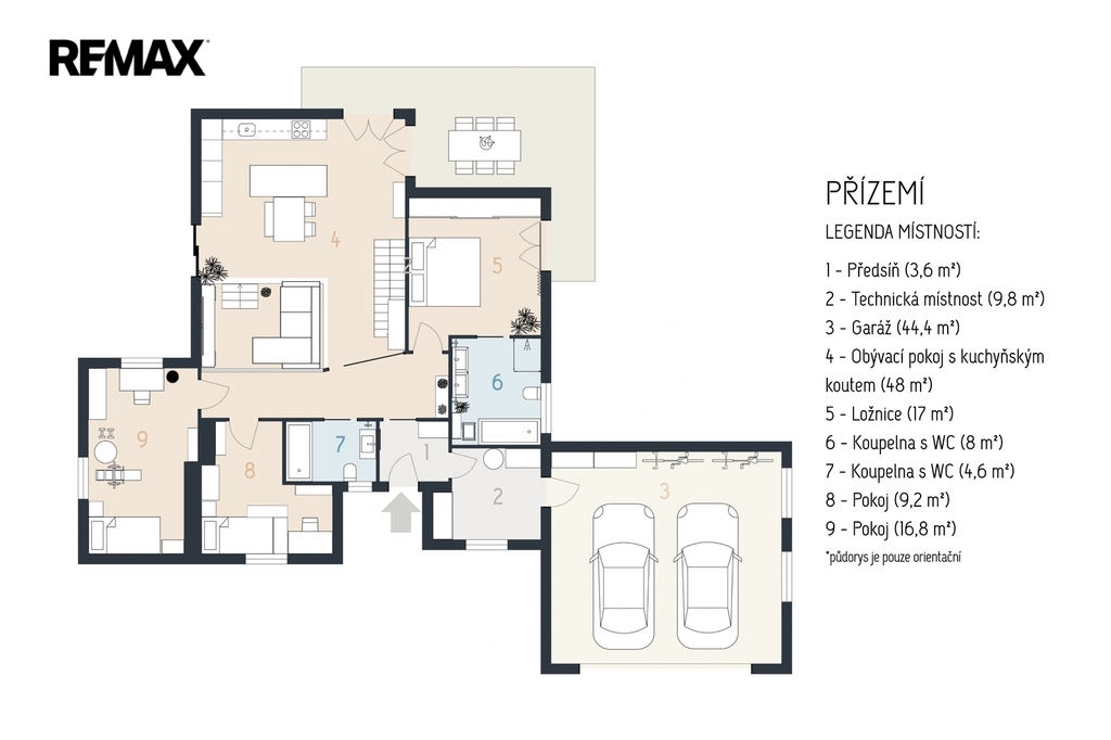 Moderní rodinný dům z roku 2019, v klidné části Ostravy, který nabízí komfortní bydlení spojené s dostatkem prostoru i soukromí. Dům má zastavěnou plochu 205 m² a je umístěn na pozemku o velikosti 1 371 m². Dispozice domu je promyšlená tak, aby splňovala nároky celé rodiny. V přízemí se nachází prostorný obývací pokoj propojený s kuchyní (40 m2), kde originálně zapuštěná sedací souprava vytváří jedinečný prvek interiéru. Z kuchyně i ložnice (15 m2) je přímý vstup na terasu. Hlavní ložnice má svou vlastní luxusní koupelnu (8 m2) s vanou, sprchovým koutem a dvěma umyvadly, další dva pokoje (12 m2 a 8 m2) doplňuje koupelna (3 m2) s vanou a WC. V patře se rozprostírá velký pokoj (22 m2), který lze využít jako hernu, pracovnu či kombinaci obojího, nechybí ani prostorná chodba (13 m2) a další koupelna (56 m2) se sprchovým koutem a WC. Součástí domu je velká zahrada, která nabízí volnost pro úpravy podle představ nového majitele. Na pozemku se nachází terasa pro venkovní posezení a vlastní basketbalové hřiště vyrobeno z vysoce kvalitního polyreutanu. Parkování je zajištěno v garáži (44 m2) pro dva vozy a na dalších dvou venkovních stáních před domem. Technické zázemí domu splňuje požadavky moderní doby – klimatizační systém zajišťuje vytápění i chlazení a je napojen na všechny místnosti v domě. K dispozici je indukční varná deska, plastová okna, napojení na veřejný vodovod a elektřinu (230 V). Odpad je řešen soukromým septikem, přičemž v letech 2026–2027 se plánuje výstavba veřejné kanalizace. Provozní náklady činí přibližně 5 600 Kč měsíčně za elektřinu a 600 Kč za vodu. Dům se nachází v tiché a příjemné části obce, která zároveň zajišťuje dobrou dostupnost do centra Ostravy i na hlavní dopravní tahy. Jedná se o ideální volbu pro rodinu, která hledá moderní, prostorné a originální bydlení s možností aktivního trávení volného času na vlastním pozemku. Z právních důvodů je uvedena energetická třída G (bez PENB), realita však odpovídá nižší energetické náročnosti. V domě byl instalován rekuperátor energie v ceně 400 000 Kč a nyní jsou platby cca 5 500 Kč měsíčně za veškeré náklady na vytápění, ohřev vody atd. Prodávající si vyhrazuje právo vybrat kupujícího na základě jím zvolených kritérií.